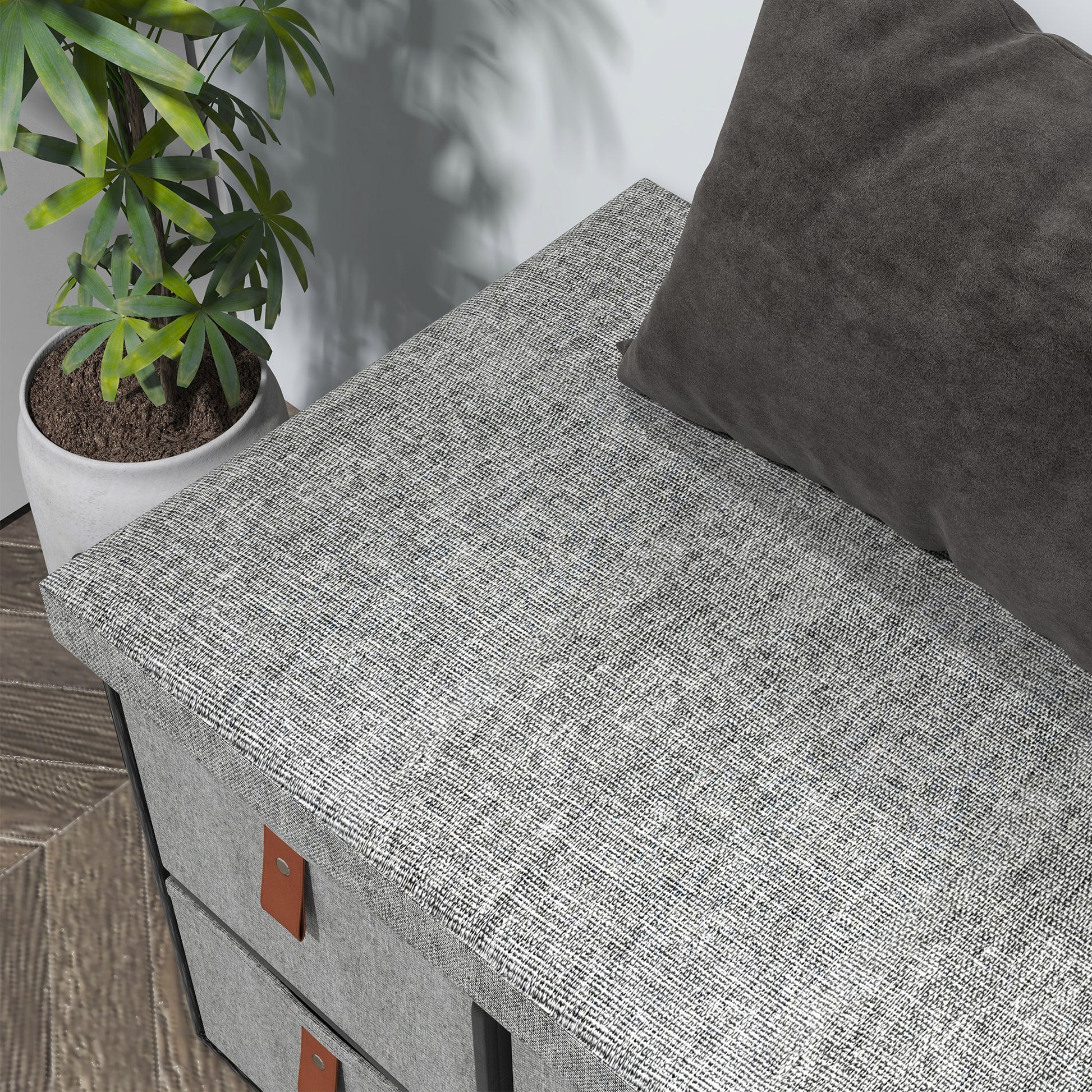 Shoe Bench with Seat, Shoe Storage Bench with Cushion and 6 Fabric Drawers for Entryway, Hallway, Living Room, Bedroom, Light Grey