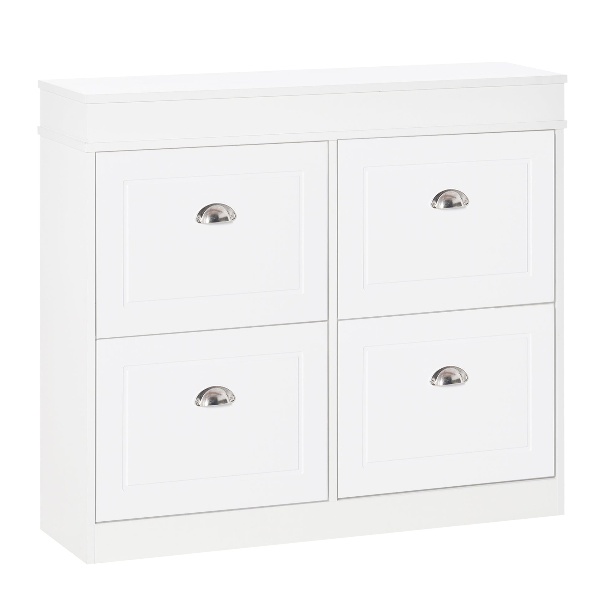 Shoe Cabinet with 4 Flip Drawers Wood Tipping Bucket Narrow Storage Cupboard with Adjustable Shelf Hall Organizer for Entrance Foyer White