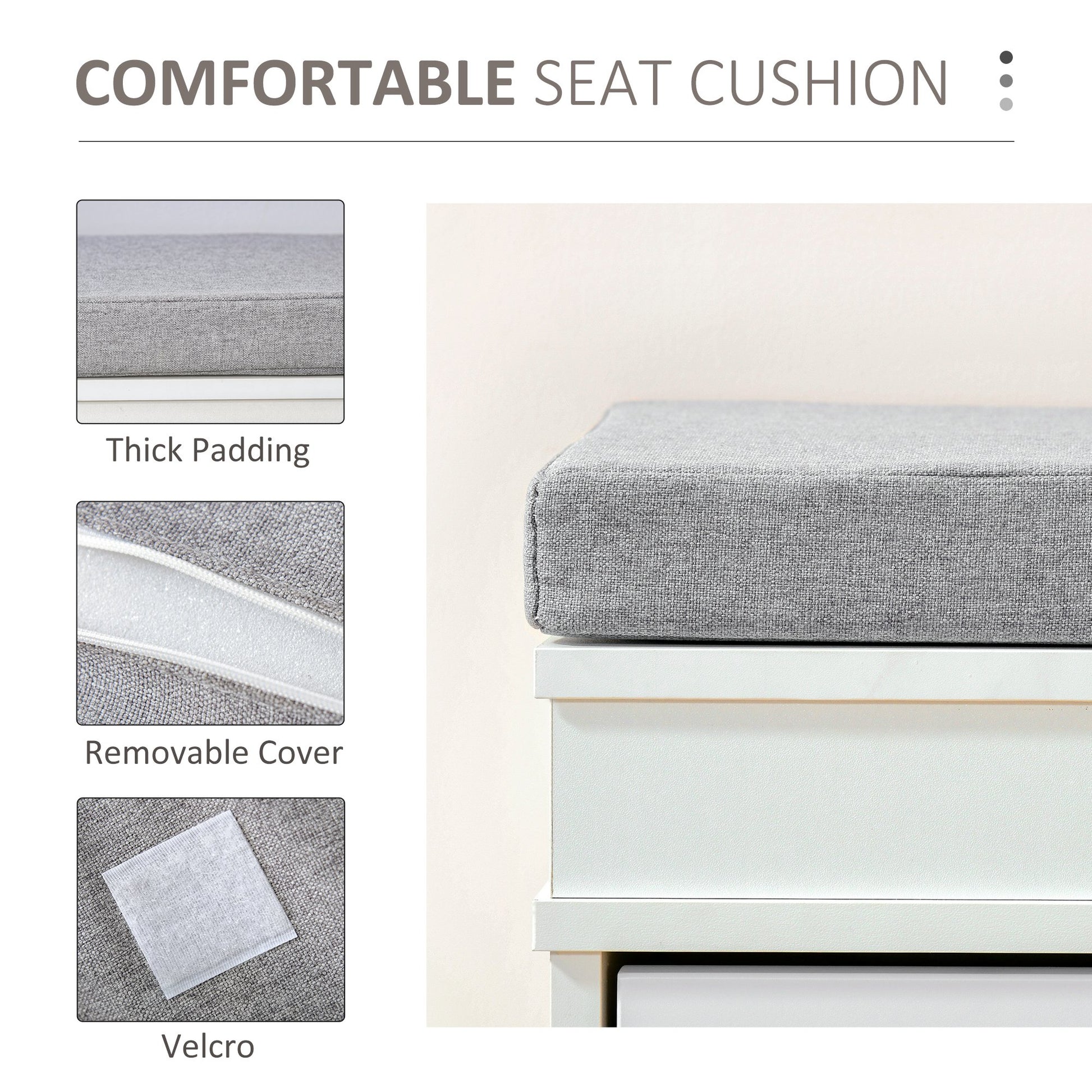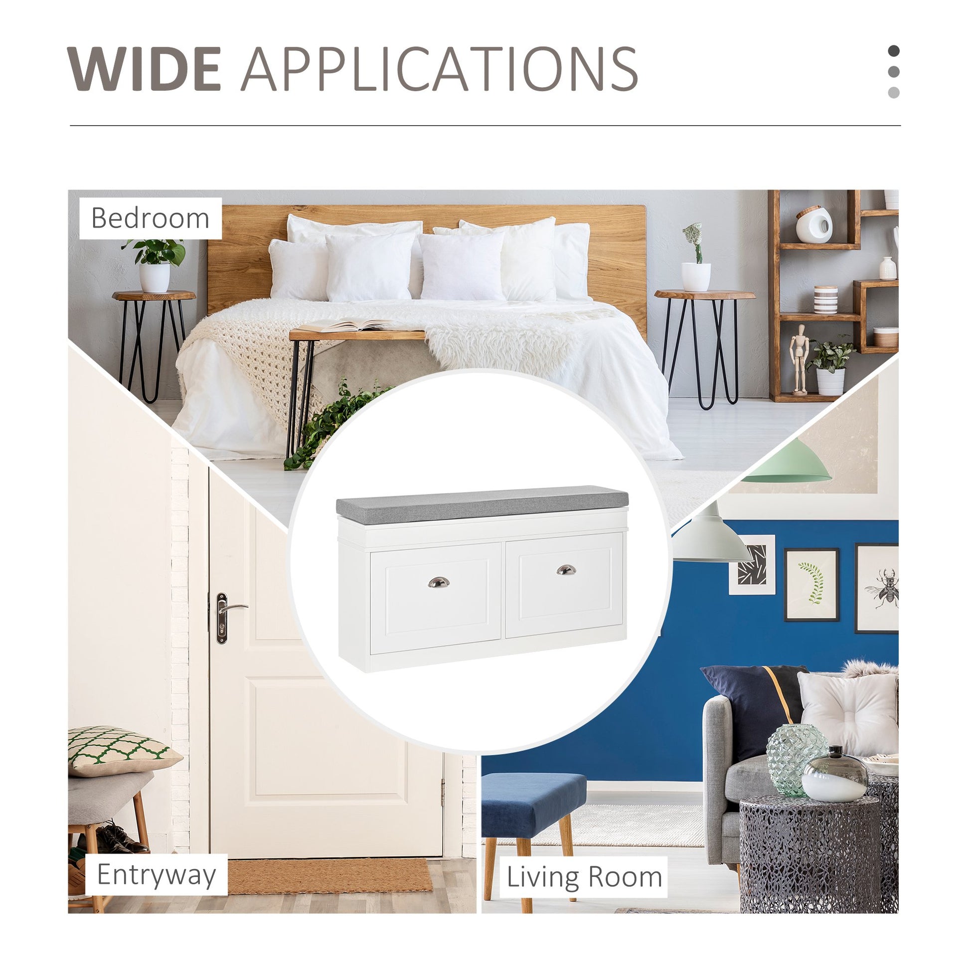 Shoe Storage Bench With Seat Cushion Hallway Cabinet Organizer with 2 Drawers Adjustable Shelf for Entryway Living Room Bedroom White