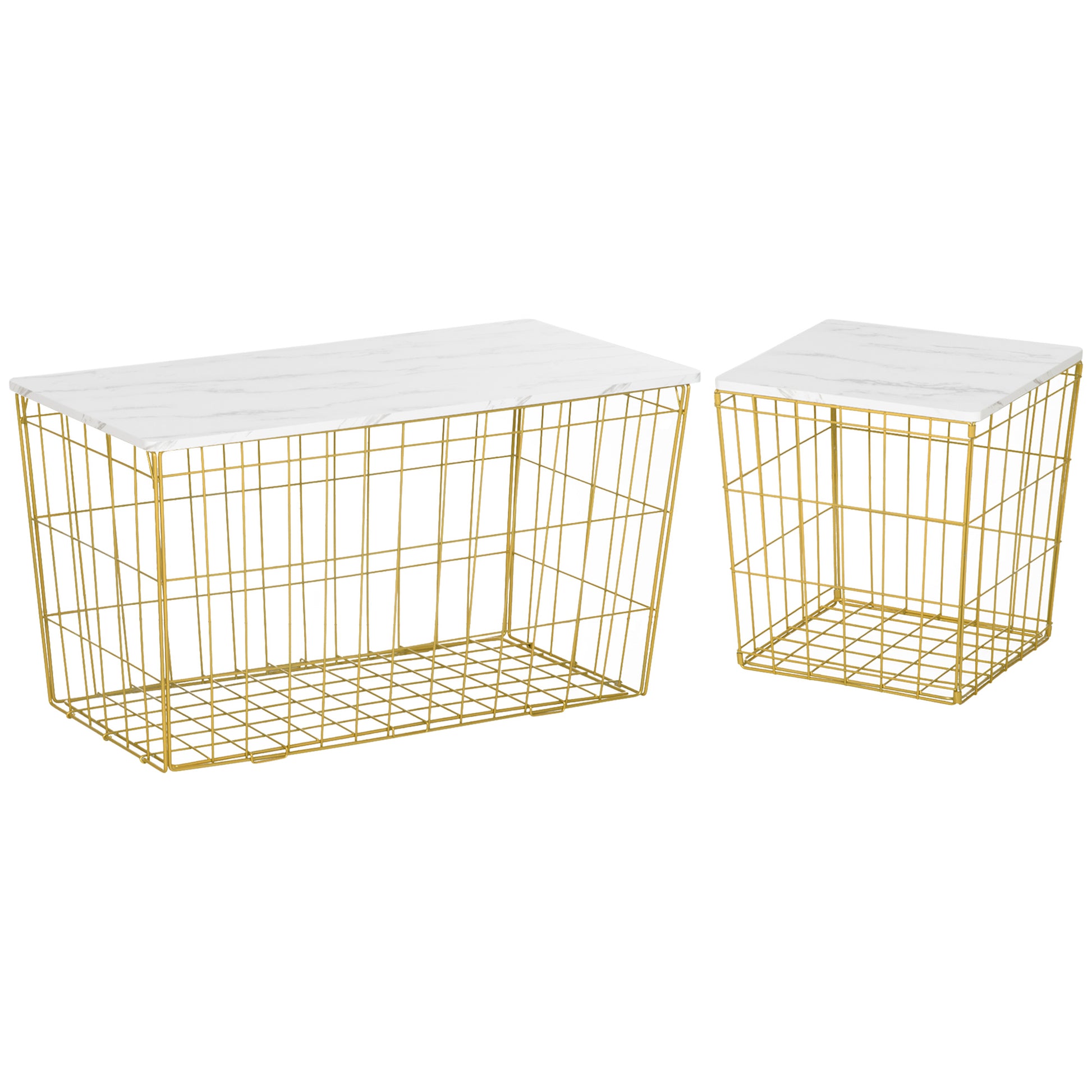 Use together or alone - these basket-base tables, from HOMCOM, are the perfect decoration in your home. The sturdy steel wire frame makes each table suitable for your daily use. They can be used as a coffee table set, bedside table, storage basket, or even as side tables. The marble-effect tops lift off, so you can use the bottoms as handy storage - magazines, blankets and more. Easy to assemble, you have these ready to go in little time.