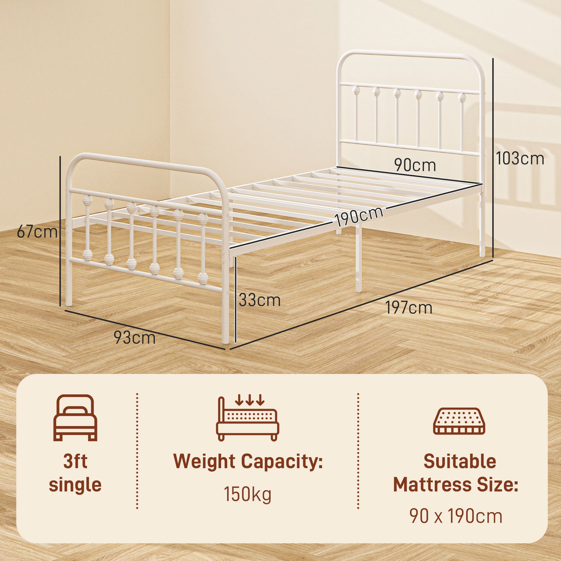 Sweet dreams made simple with this HOMCOM bed frame. The minimalistic metal frame makes it a versatile piece, suitable for practically any room style. The single size is suitable for teenagers and adults, and holds a 90 x 190cm sized mattress. Made from powder coated steel, this frame is strong and supportive, with built-in slats to prevent squeaking. With a 33cm under-bed clearance, there's room underneath for discreetly keeping boxes - a tidier room!