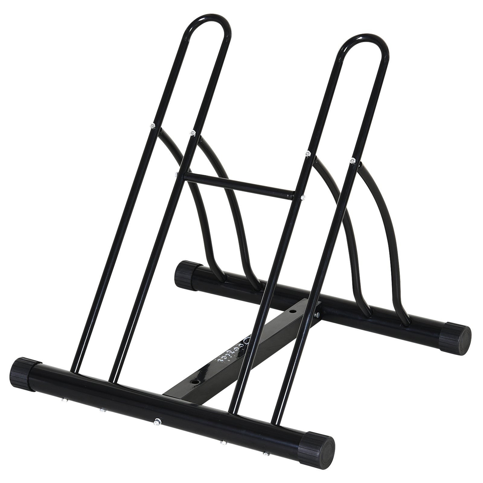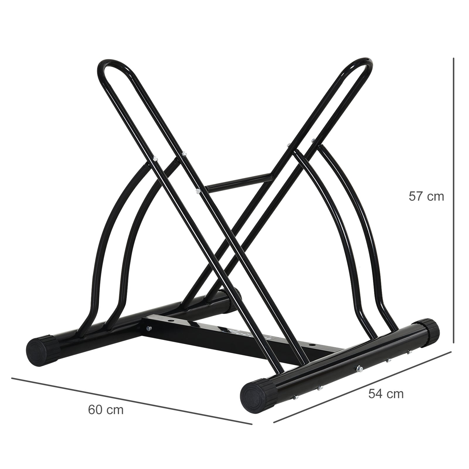 Give your bikes somewhere safe and memorable to be kept with this stand from HOMCOM. It's made from steel so it keeps itself in shape with prolonged wearability, and it's formed into a clever reversible design so you can set up it up in any kind of space and direction. It is finished with PVC caps on the feet which help protect the ground and the frame from any damage. Suits bikes with tyre widths smaller than 6.5cm, easy to set up.