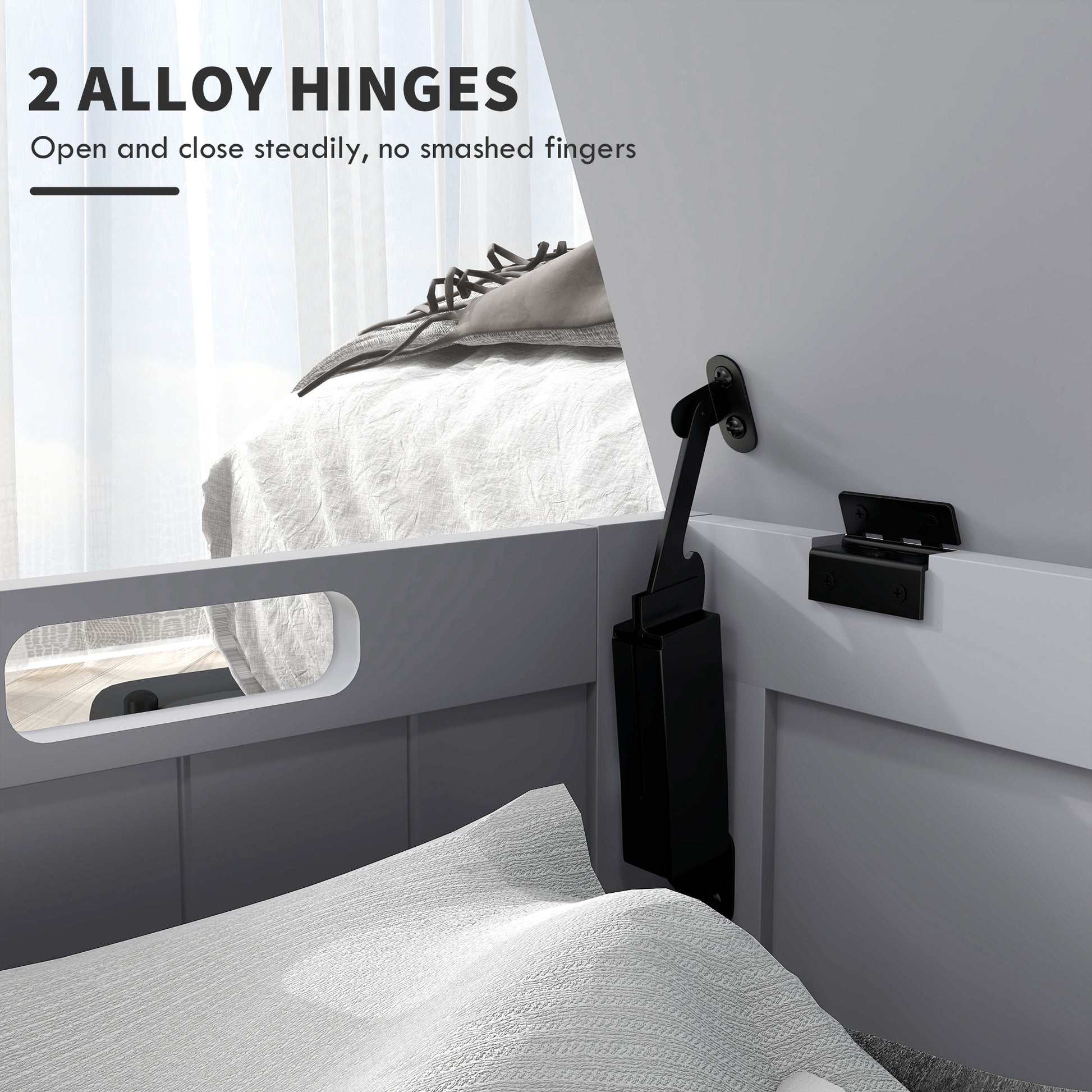- Two hinges hold the lid safely in place
