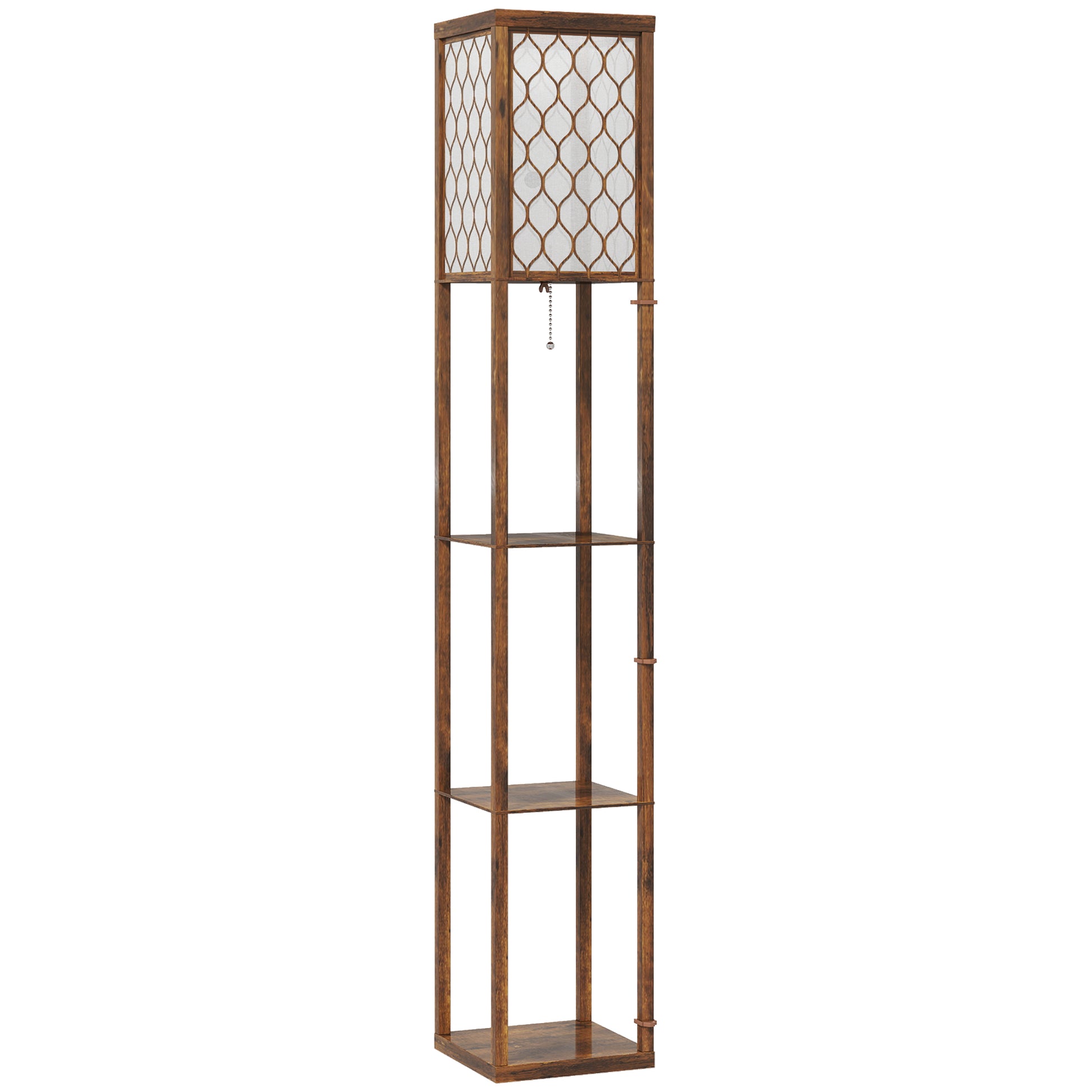 Three-Shelf Standing Lamp - Rustic Brown/White