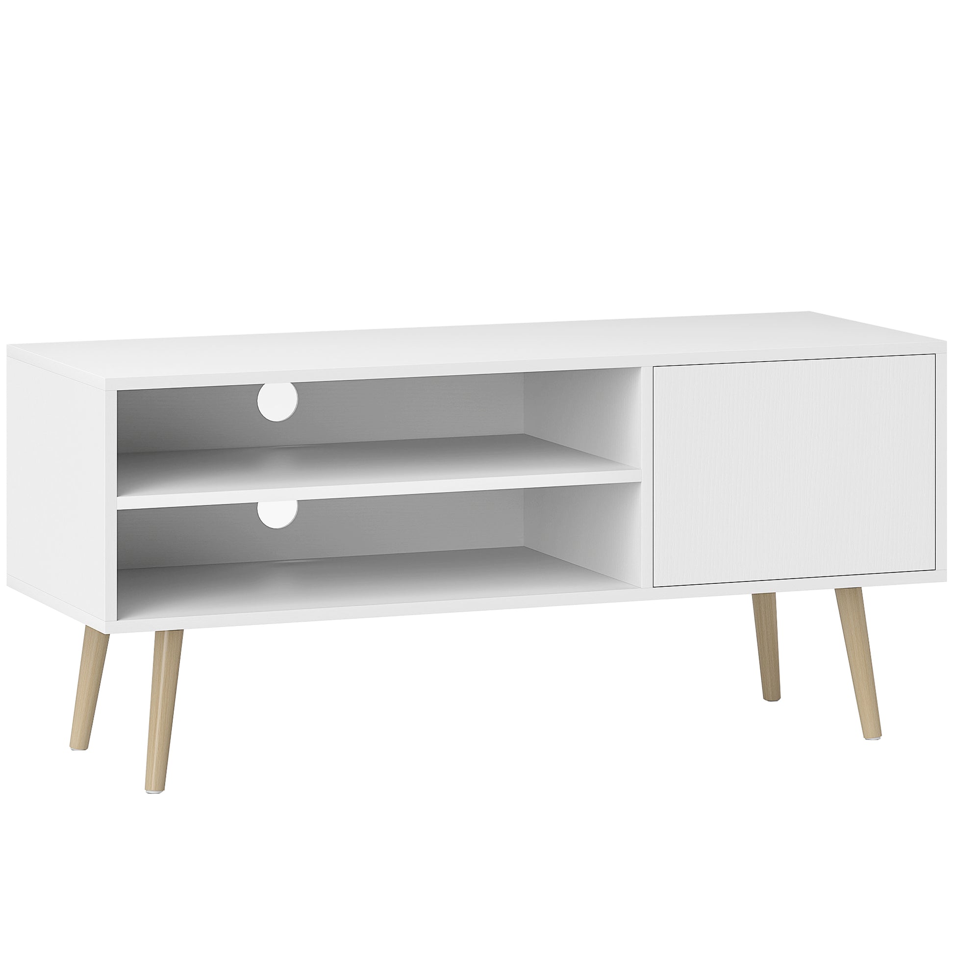 TV Stand up to 55 Inches, TV Unit with Open Shelves and Cable Holes - White / Brown