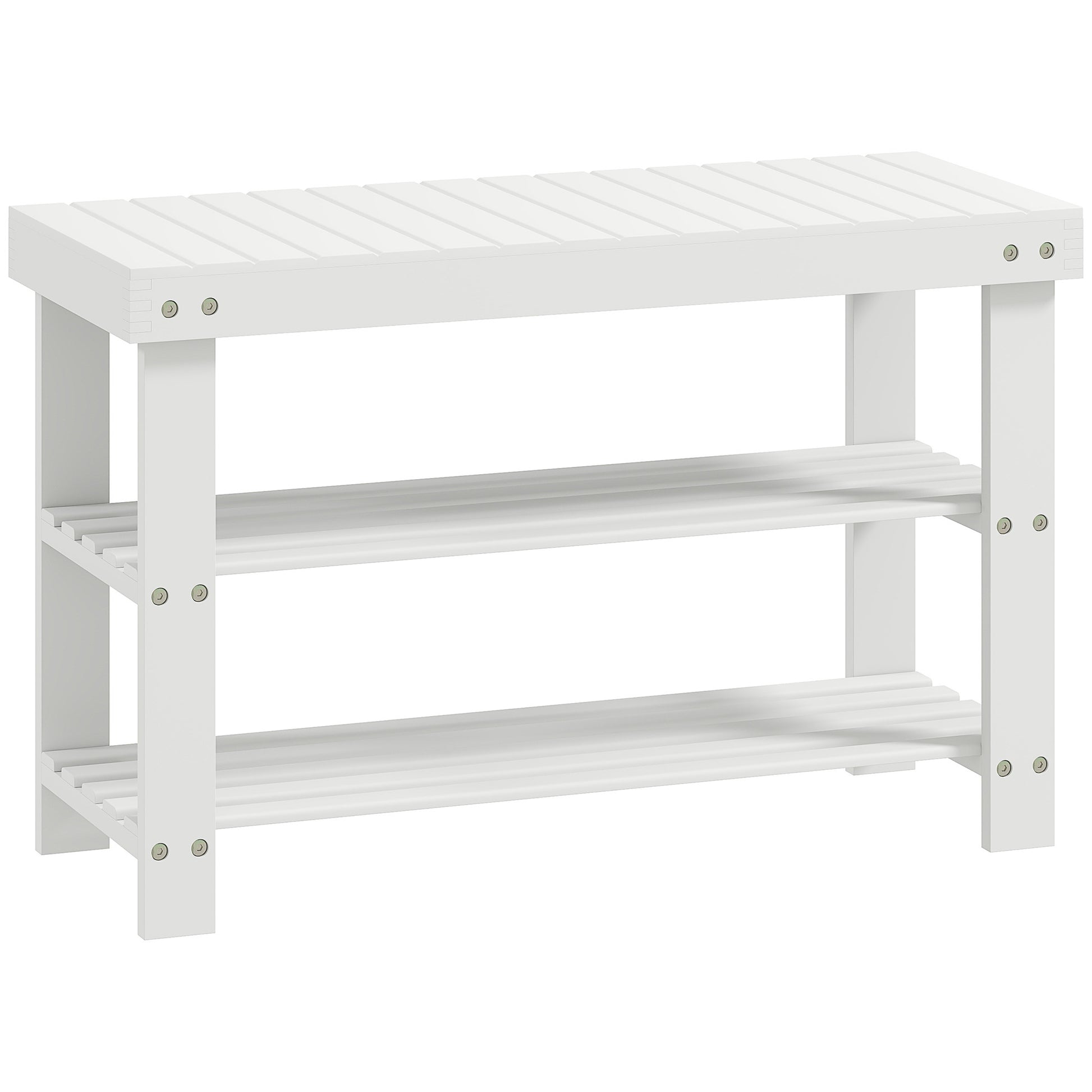 Two Shelf Bamboo Shoe Storage Bench - White