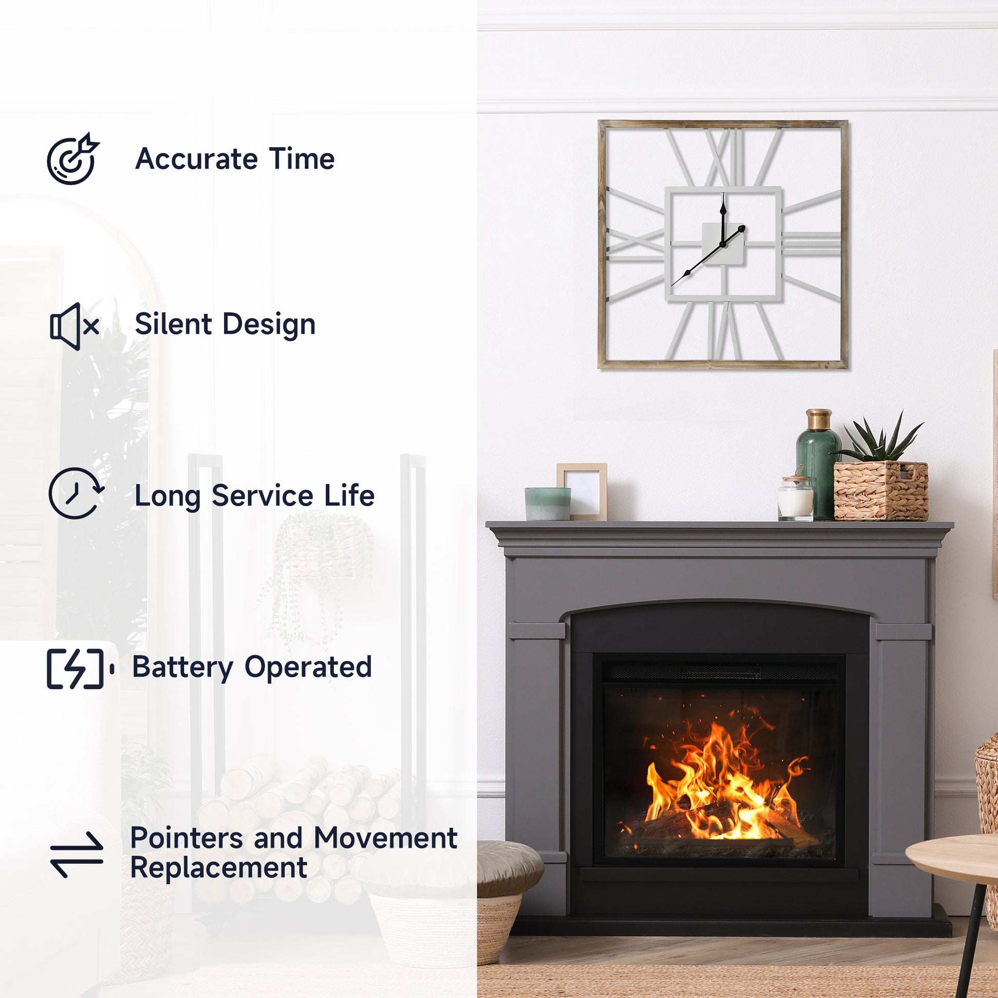 - Quiet movement without ticking, suitable for bedroom, living room, home office