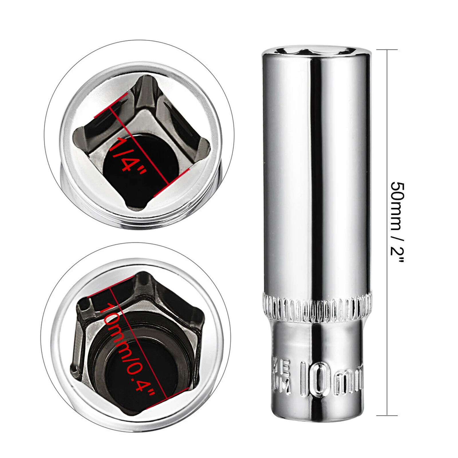 Industrial Grade 4-piece 1/4-inch Driver for Easy Carrying and Durability 10mm 6-point Deep Socket Metric Cr-V Hand Tools