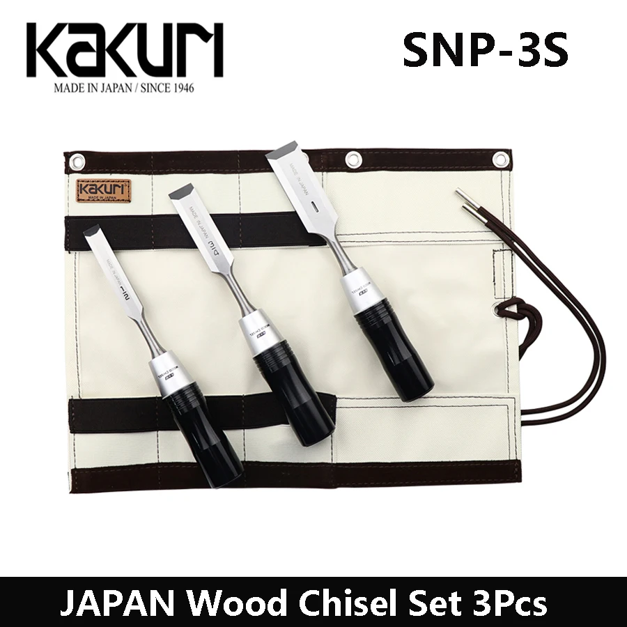 KAKURI SNP-3S Japan Wood Chisel Set 3 Piece Carving Knife with Storage Bag for Professional Woodworking Processing and Engraving
