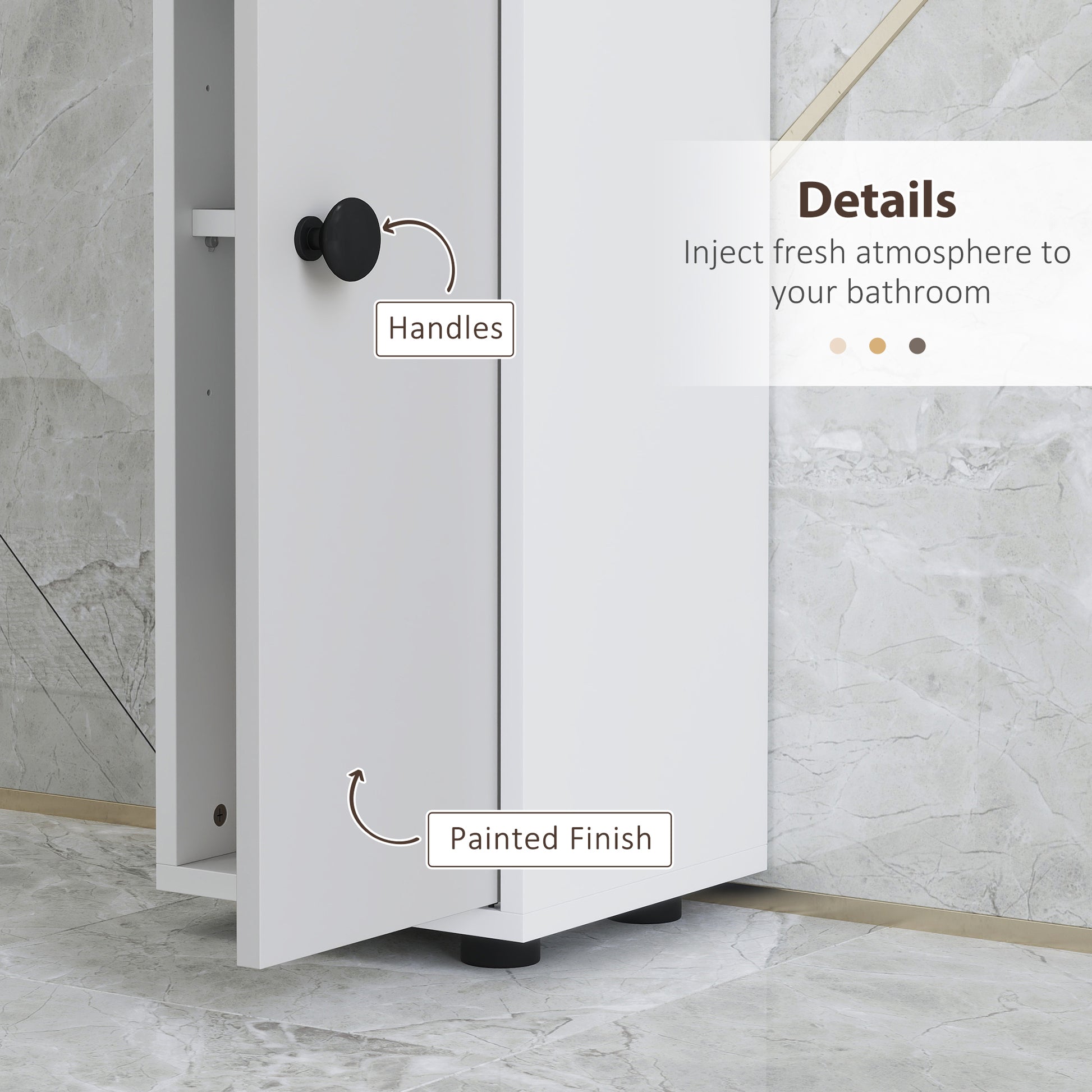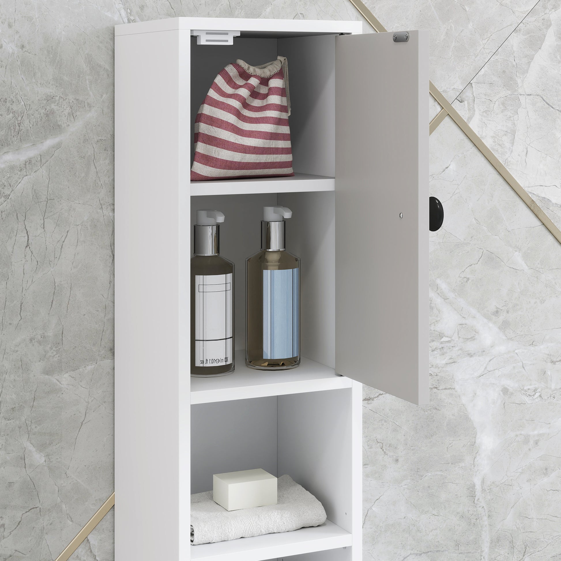 Kleankin 180cm Slim Bathroom Cabinet, with Drawer, Shelves and Cupboards - Light Grey