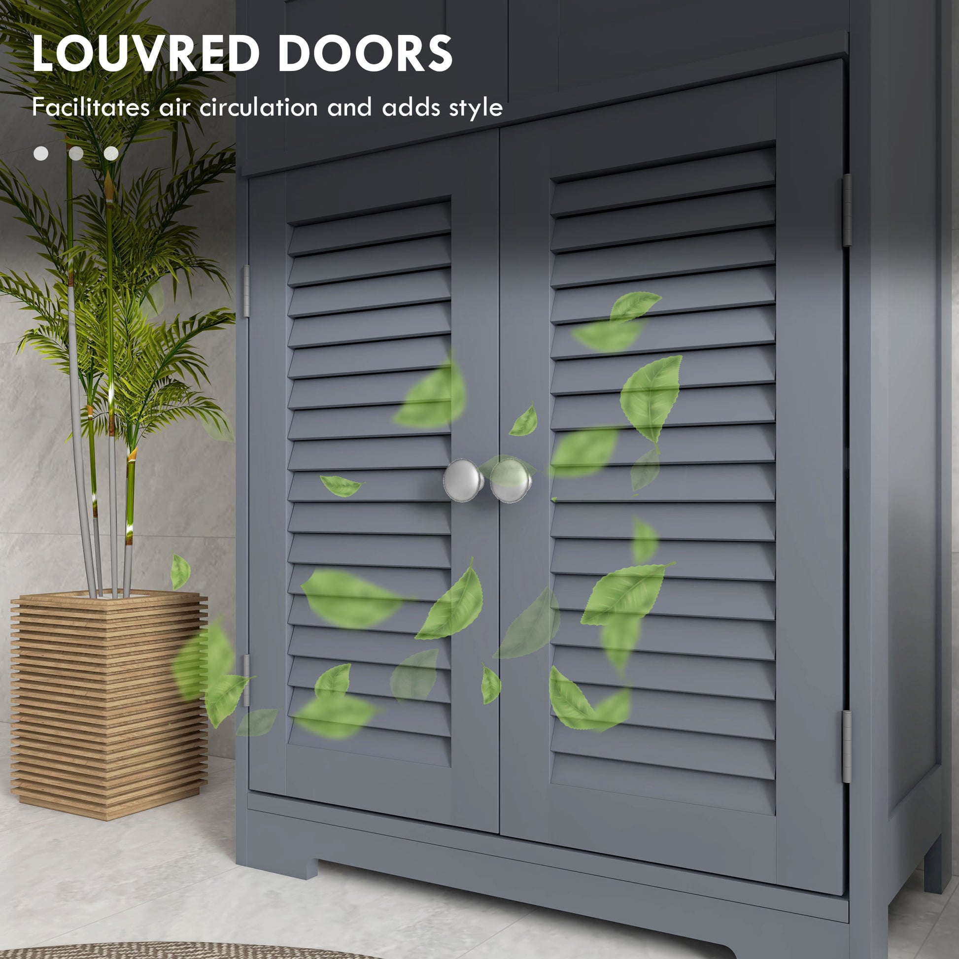 Kleankin Bathroom Cabinet with Drawers, Bathroom Storage Cabinet with Louvred Doors, Open Compartment and Adjustable Shelf for Washroom, Grey