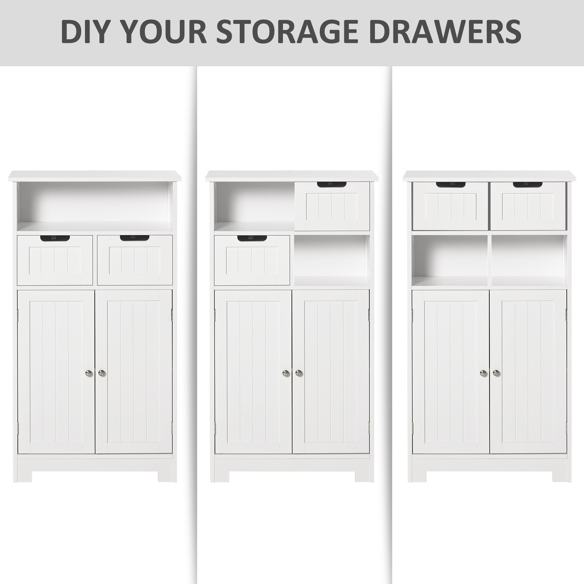 Expand the holding capacity in your bathroom with this small bathroom cabinet from kleankin. Made from MDF, it's durable, with a coat for water-resistant paint for extra protection. Features a top open shelf, two removable drawers and a bottom cupboard with adjustable shelf - a place to store all your bathroom essentials and more. You can even take out the two drawers and put them in the top shelf to switch up the look in an instant.
