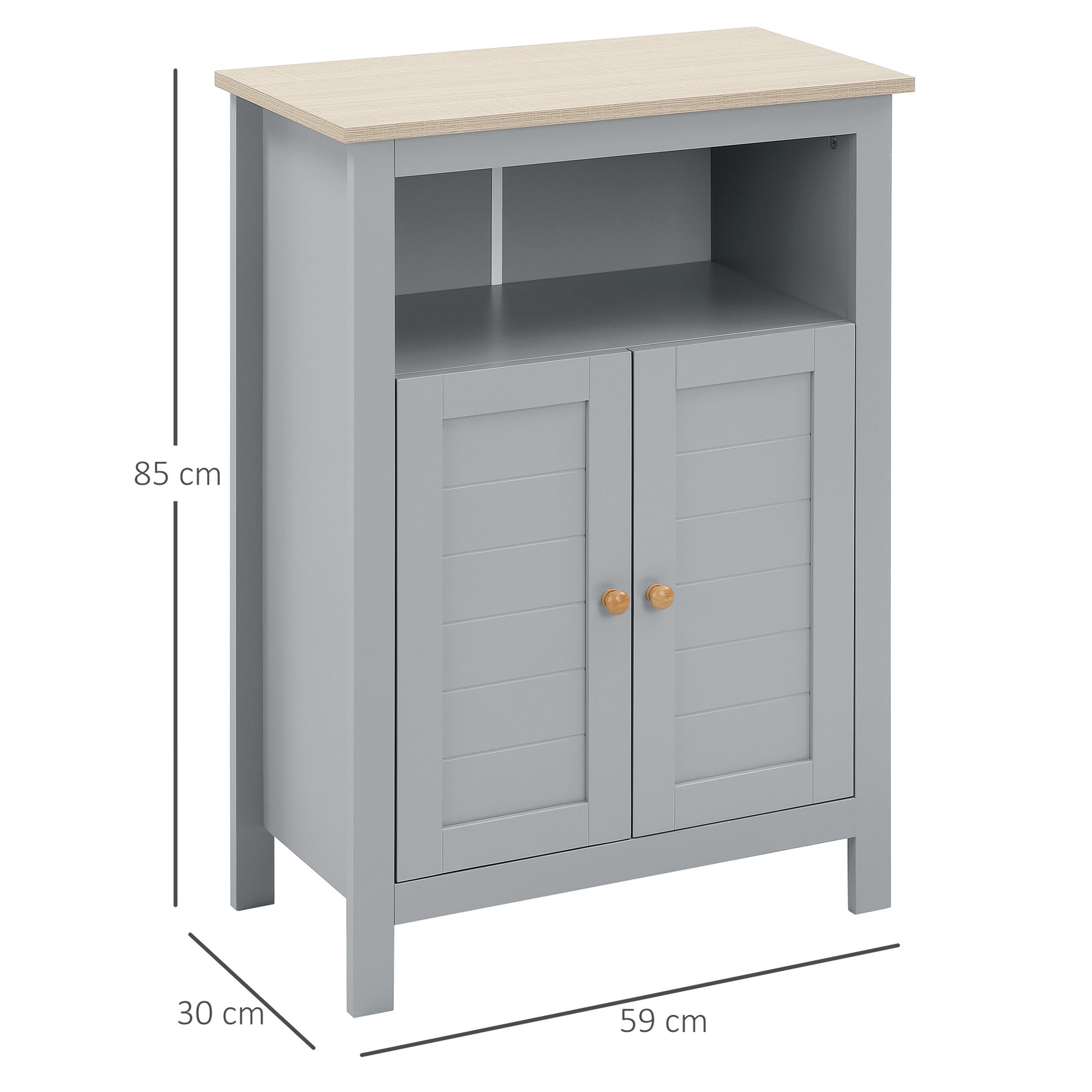 Kleankin Bathroom Floor Storage Cabinet Free Standing Unit with Compartment Adjustable Shelf Double-door Design, Free Standing Organizer, Grey