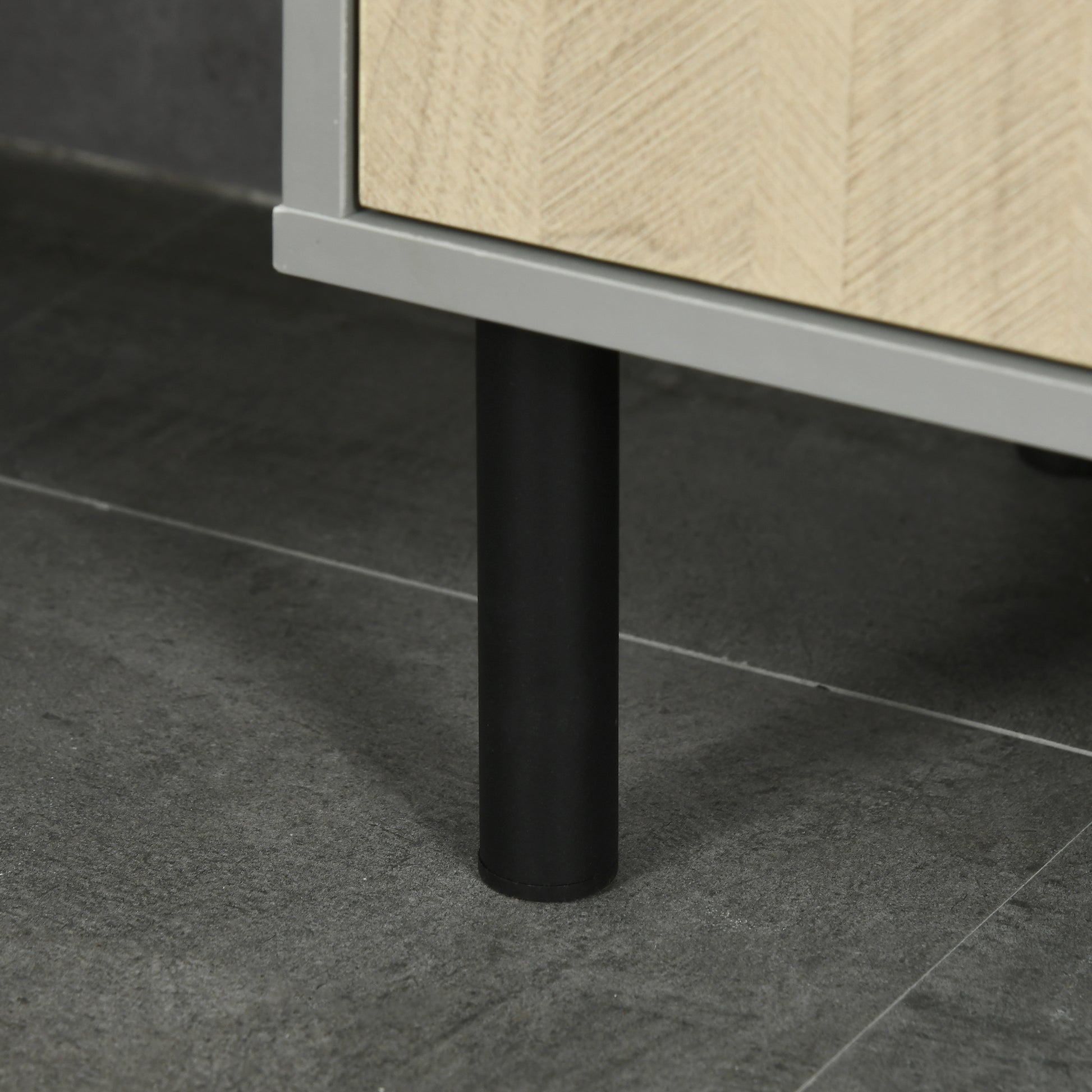 Bring modern style and save space with this kleankin bathroom furniture set, featuring an sink storage cabinet and a freestanding cabinet. The mid-grey frame with wood-effect doors offers a simple modern design. The cabinet under the sink has a "U"-shaped cut-out for the sink pipe, while the freestanding cabinet provides top and bottom cupboards, each with a shelf that can be adjusted to three different levels for different storage. A smart choice for modern homes!