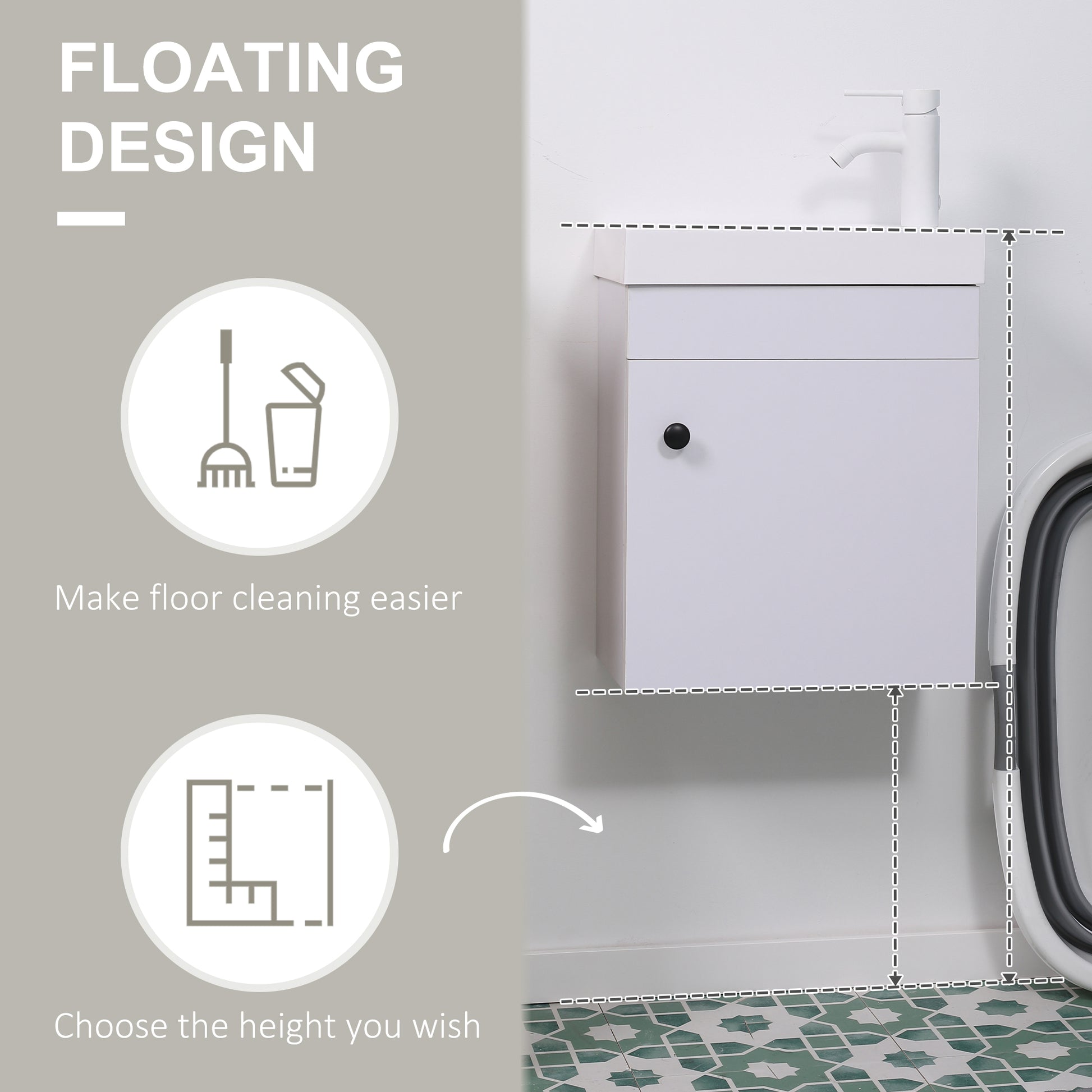 Kleankin Bathroom Vanity Unit with Basin, Wall Mounted Bathroom Wash Stand with Sink, Tap Hole and Storage Cabinet, White