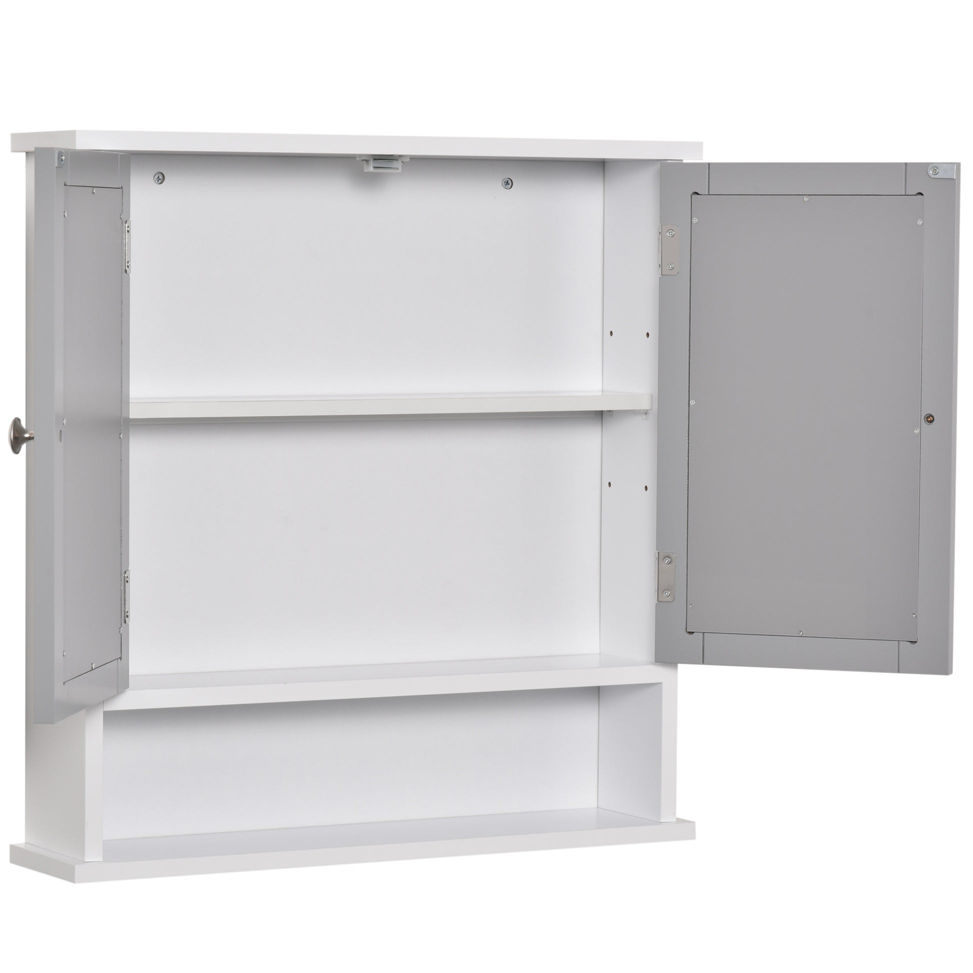 An everyday spot to get ready starts with this bathroom cabinet from kleankin. As well as space to keep products, cosmetics, toiletries and more safely stored inside, it features two small outer mirrors for easily getting ready. Adjustable inner shelf to hold products of different sizes, with bottom shelf for easy access to what you need. Wall-mountable design is ideal for saving space where needed. Finished with polished metal handles on the doors.