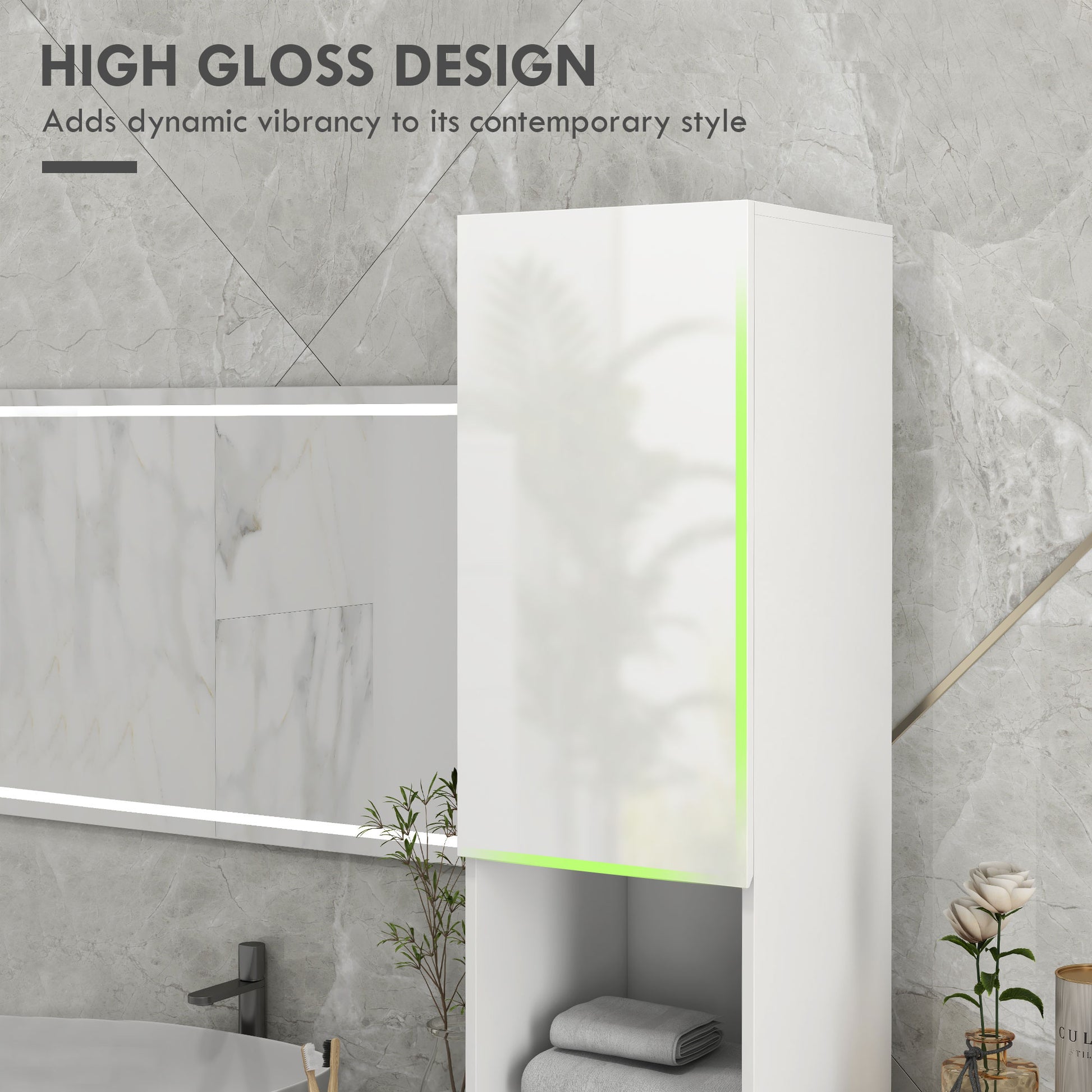 Spacious and slimline, with a modern high gloss finish - this HOMCOM tall bathroom cabinet is here to make your home better than before. With a top and bottom cupboard with two middle shelves, there's plenty of space for toiletries, towels, cleaning products and more; the adjustable shelf in the cupboards allow you to split the space as you need. With anti-tipping straps included, you can safely and securely attach the slim bathroom storage unit to a wall.