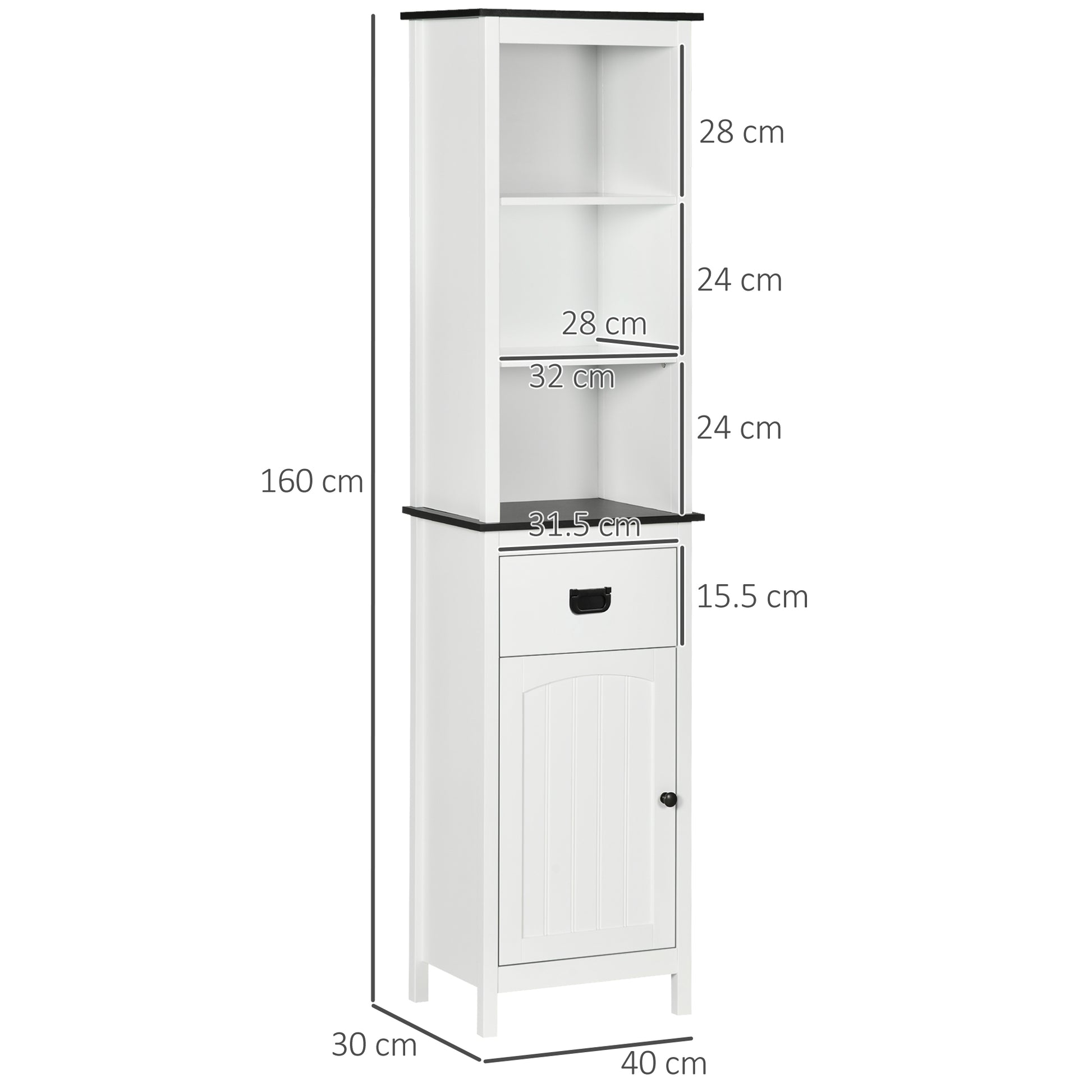 Expand bathroom storage instantly - look to this kleankin slim bathroom cabinet. Combines three top shelves, middle drawer and bottom cupboard. Top shelf and inner-cupboard shelf are adjustable to three different levels. Anti-tipping straps to attach this piece to the wall for safety. A great bathroom cupboard for your home.
