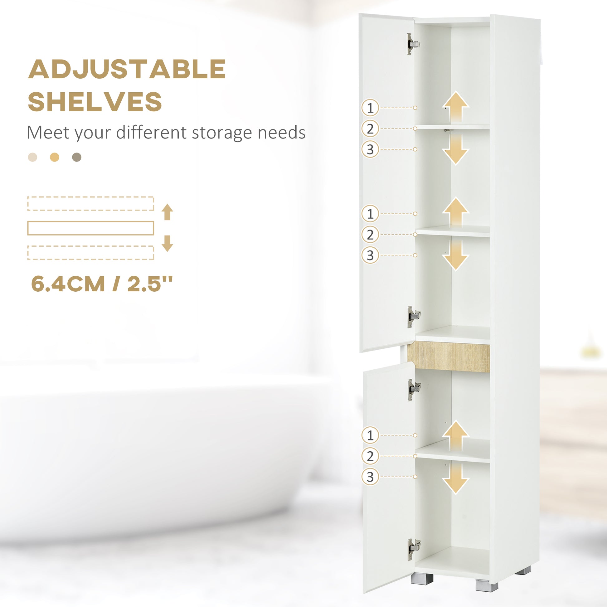 Kleankin Tall Bathroom Cabinet with Adjustable Shelves, 5-Tier Modern Freestanding Tallboy with Storage Cabinets, White