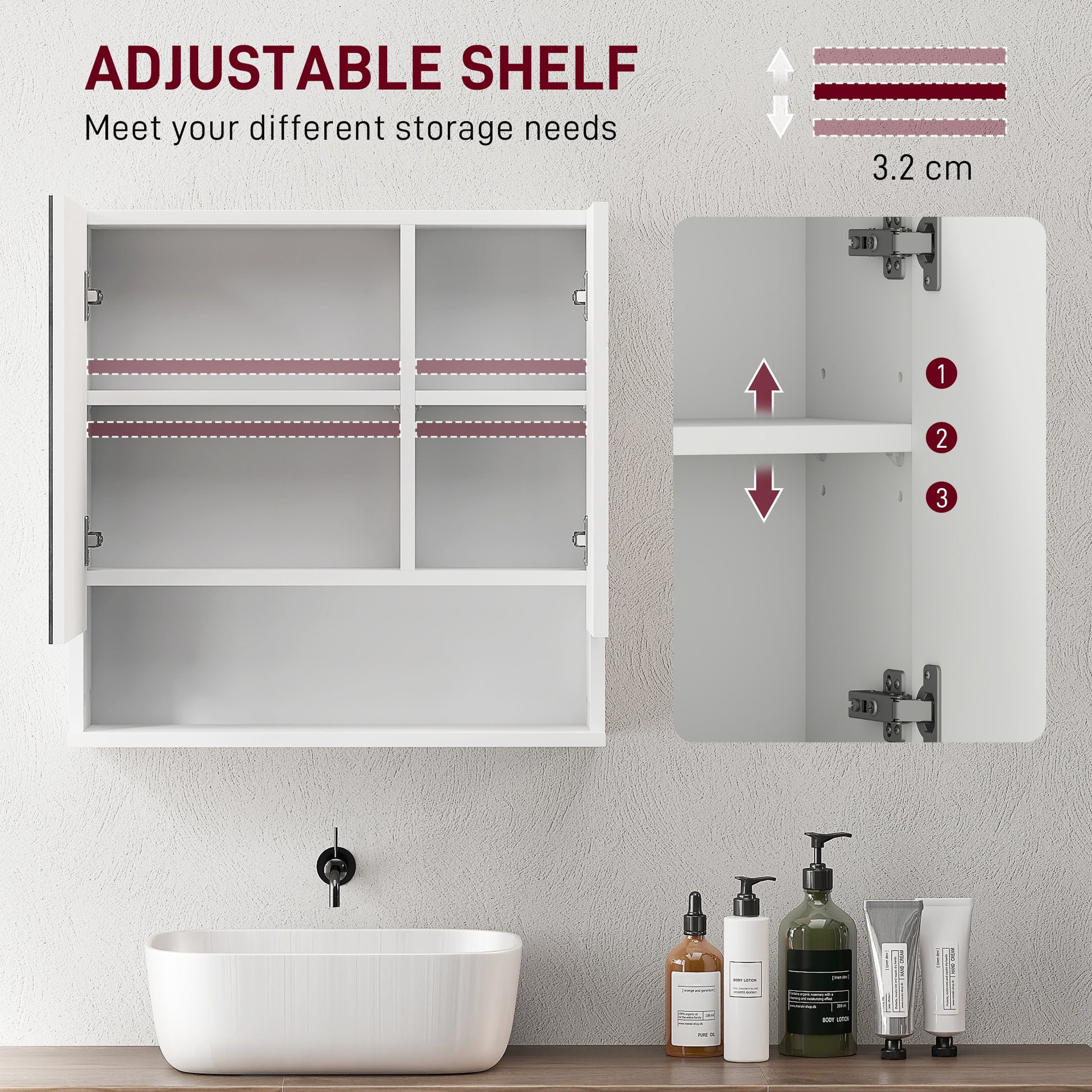 A subtle dash of impact welcomed into your space with kleankin. This bathroom wall cabinet, with its white body and doors is given a touch of extra character with the embossed lines on the doors - say hello to something unique this season and beyond. It comes with a mirrored door cupboard, side cupboard and bottom shelf; both cupboards features a three-level adjustable shelf for flexibility. Subtle style done the minimalist way.