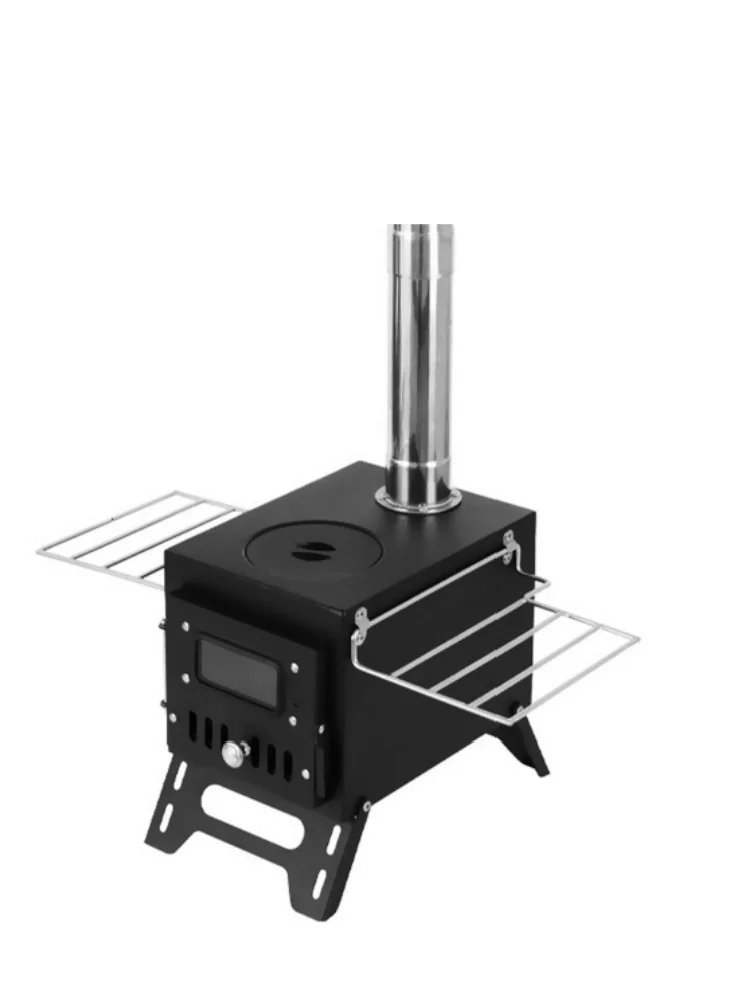 This outdoor camping heating firewood stove is sturdy and durable. The stove body has a unique design with a fire-viewing window, allowing you to clearly see the condition of the flame. In addition, it has a folding design for easy carrying. Whether it's frying, roasting, boiling, or stewing, it can handle it all, making it a great helper for camping cooking.