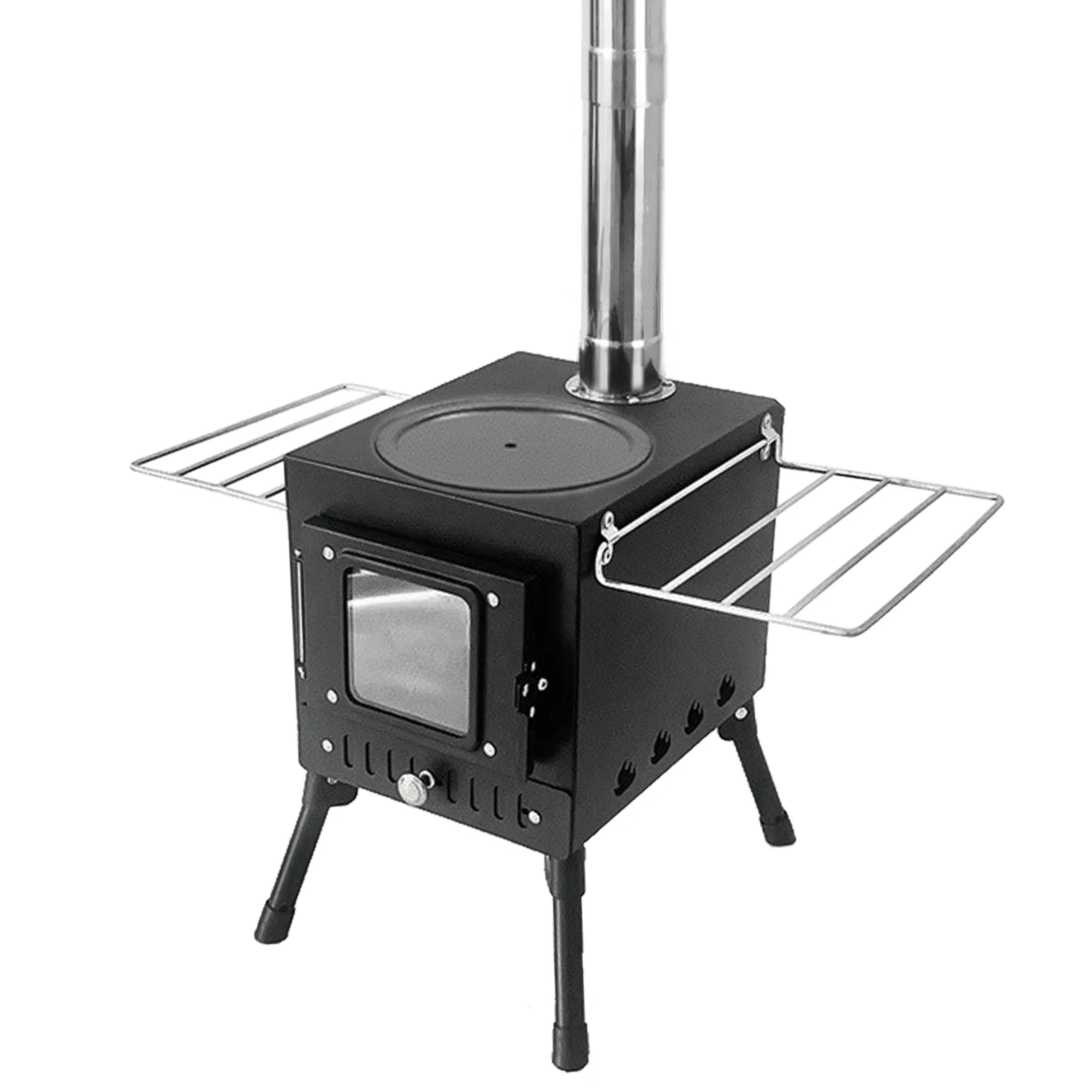 Outdoor Wood Burning Stove Firewood Stainless Steel Foldable Heater Portable Off Grid Stove For Camping With Tent Fire Window