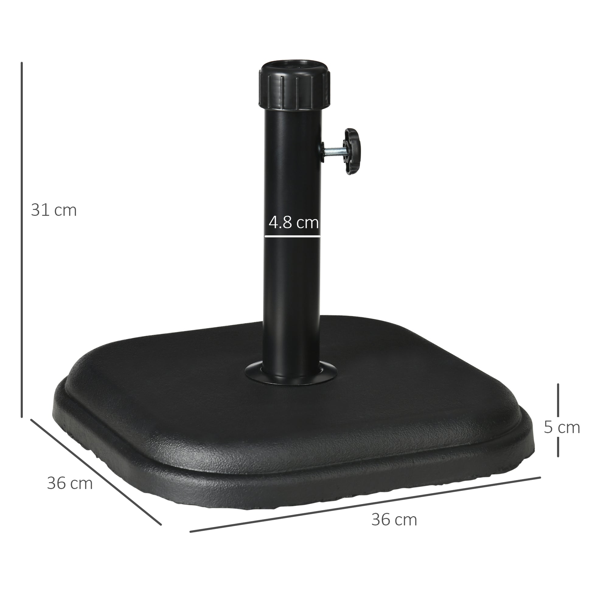Outsunny 11kg Concrete Garden Parasol Base Holder, Square Outdoor Table Umbrella Stand Weight, Black