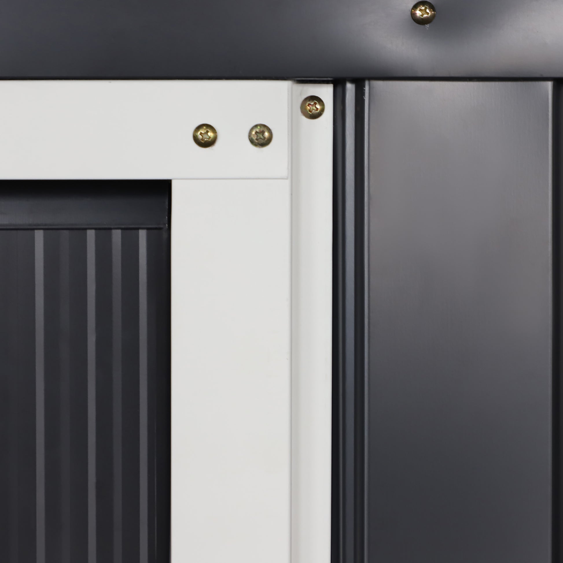 Keep your garden equipment and outdoor essentials locked away securely with this metal shed from Outsunny. Built from galvanised steel for strength, it comes with a lockable double sliding door on the front for easy access and four vents for air to circulate and prevent moisture buildup. The garden tool shed is finished with a protective weather coating and a floor foundation for it to stand level on the ground.