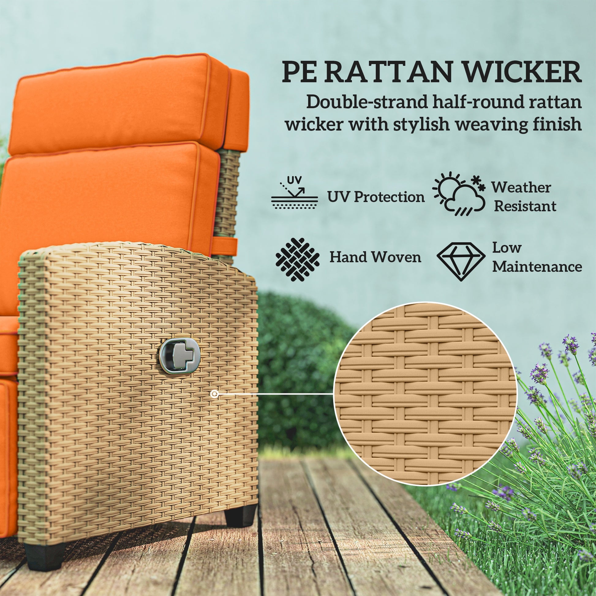 Outsunny 145° Reclining Rattan Armchair, with Footrest - Khaki/Orange