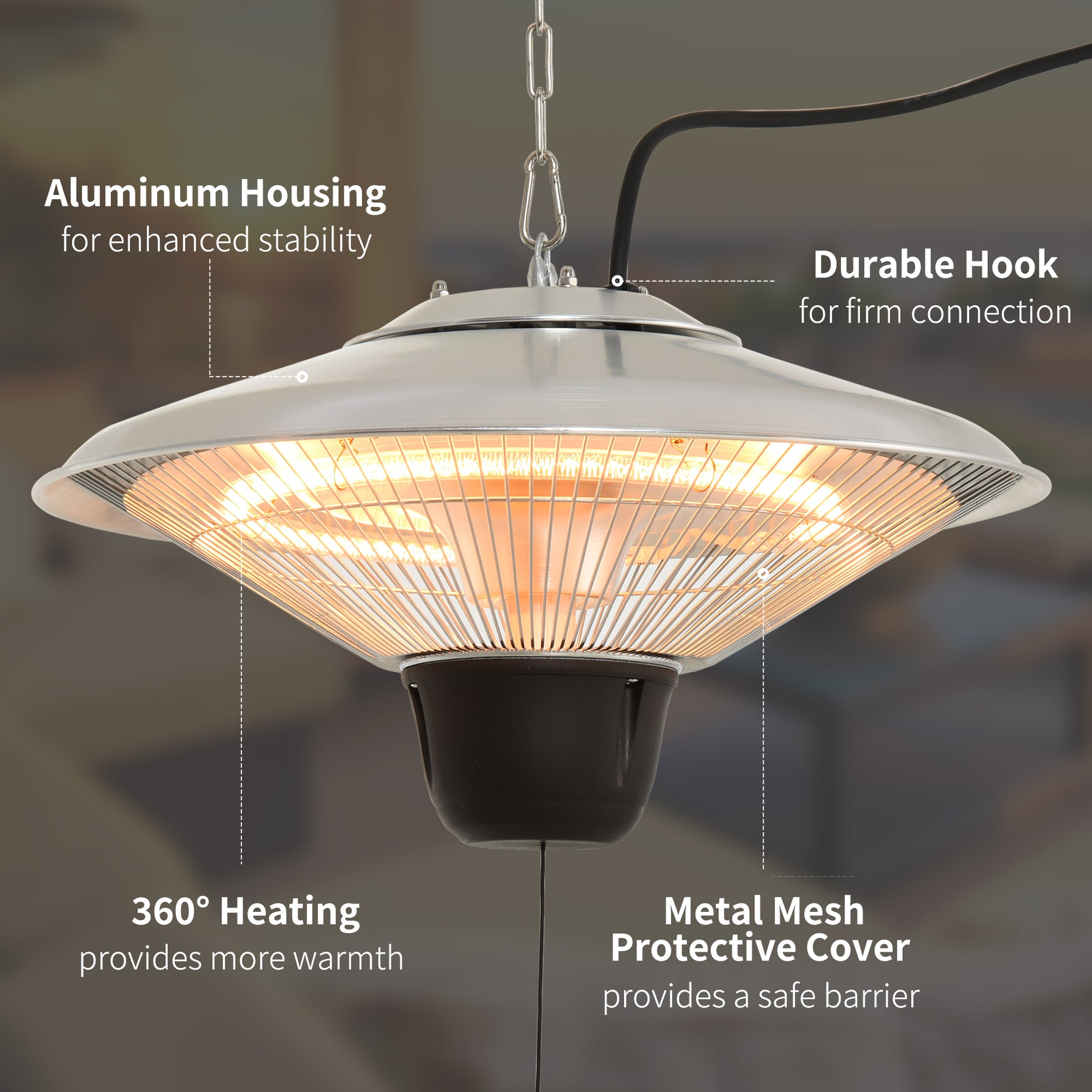 Outsunny 1500W Patio Heater Outdoor Ceiling Mounted Aluminium Halogen Electric Hanging Heating Light Pull Switch Control