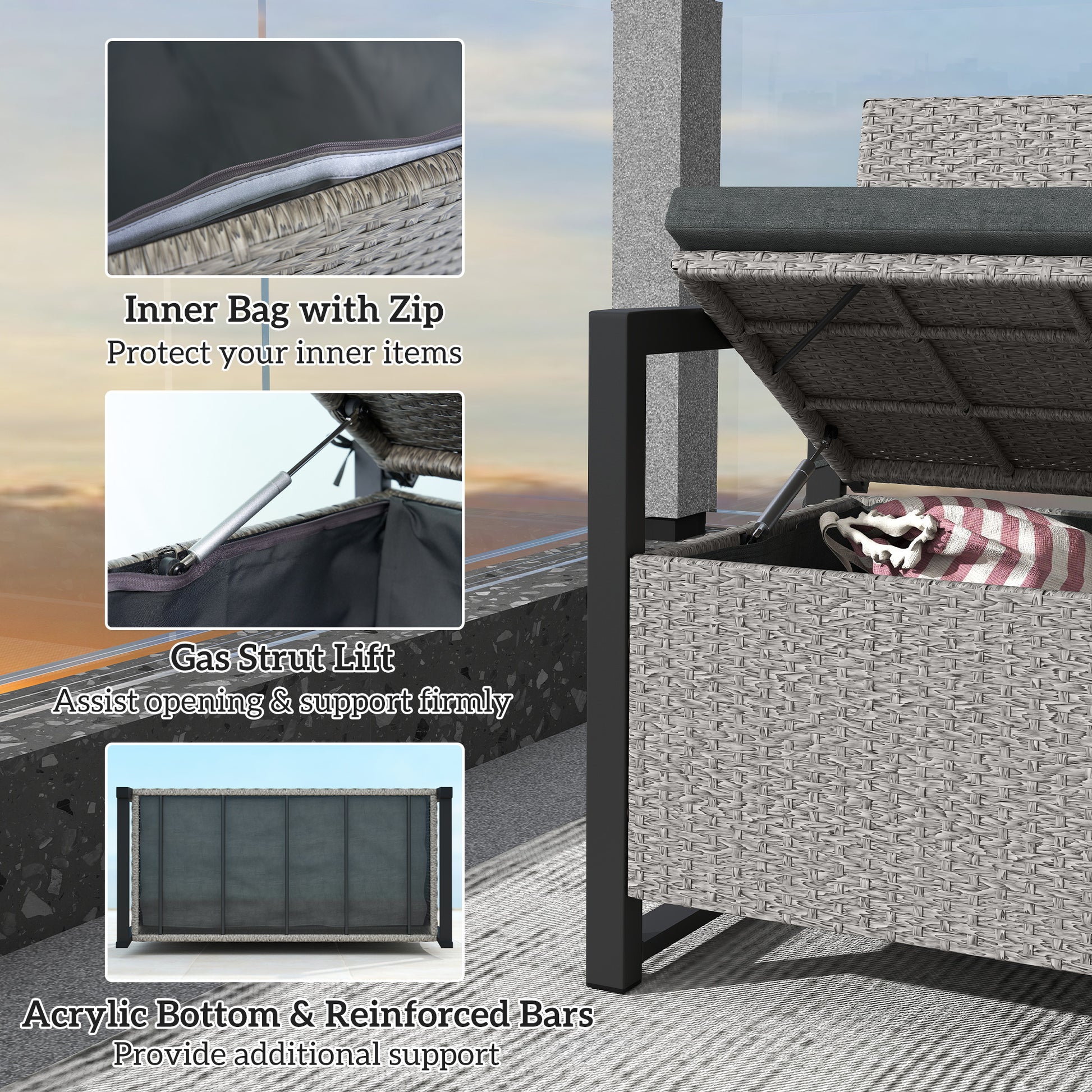 Outsunny 151.5L Storage Garden Bench, with Cushion - Grey