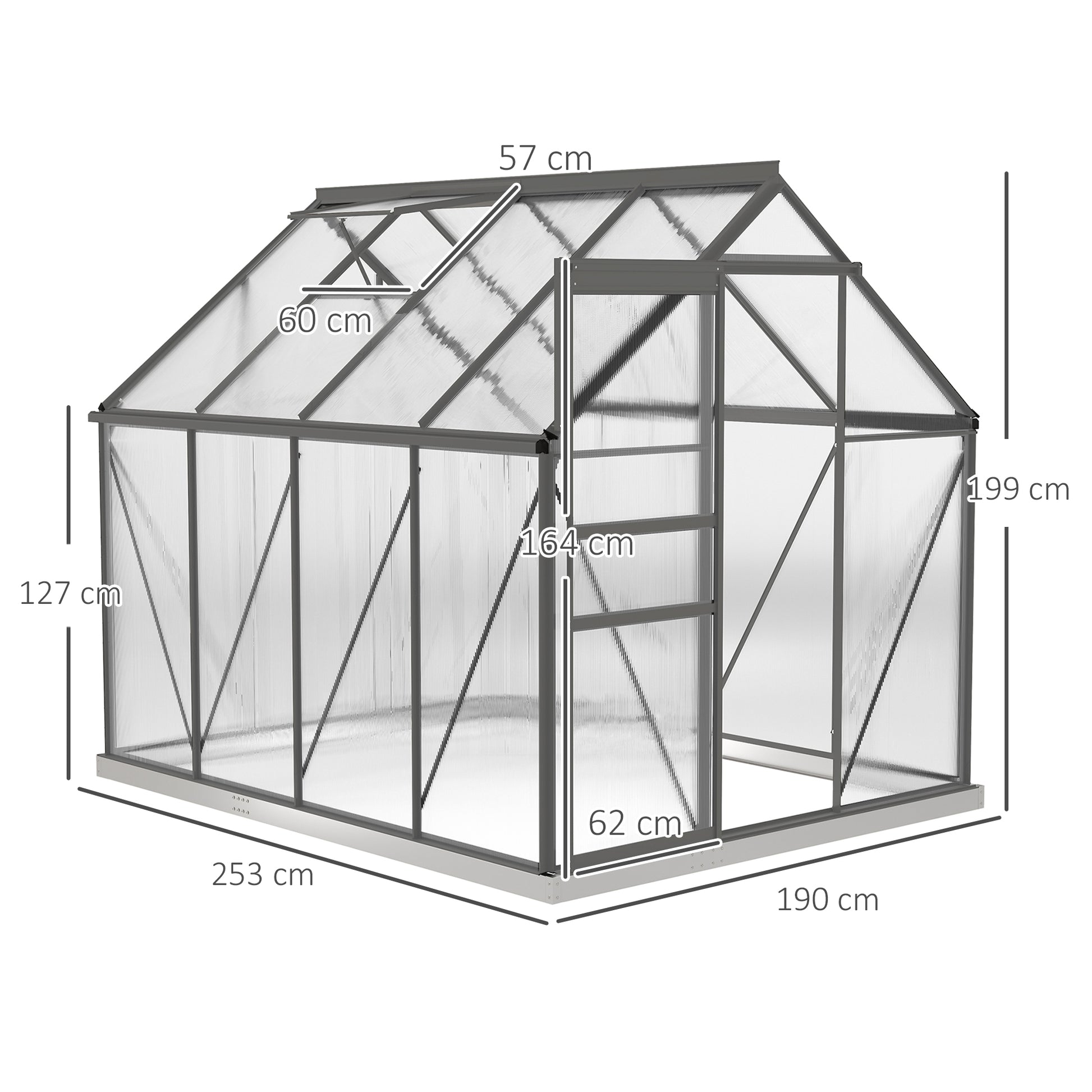 Outsunny 190 x 253 cm Walk-In Polycarbonate Greenhouse - Dark Grey