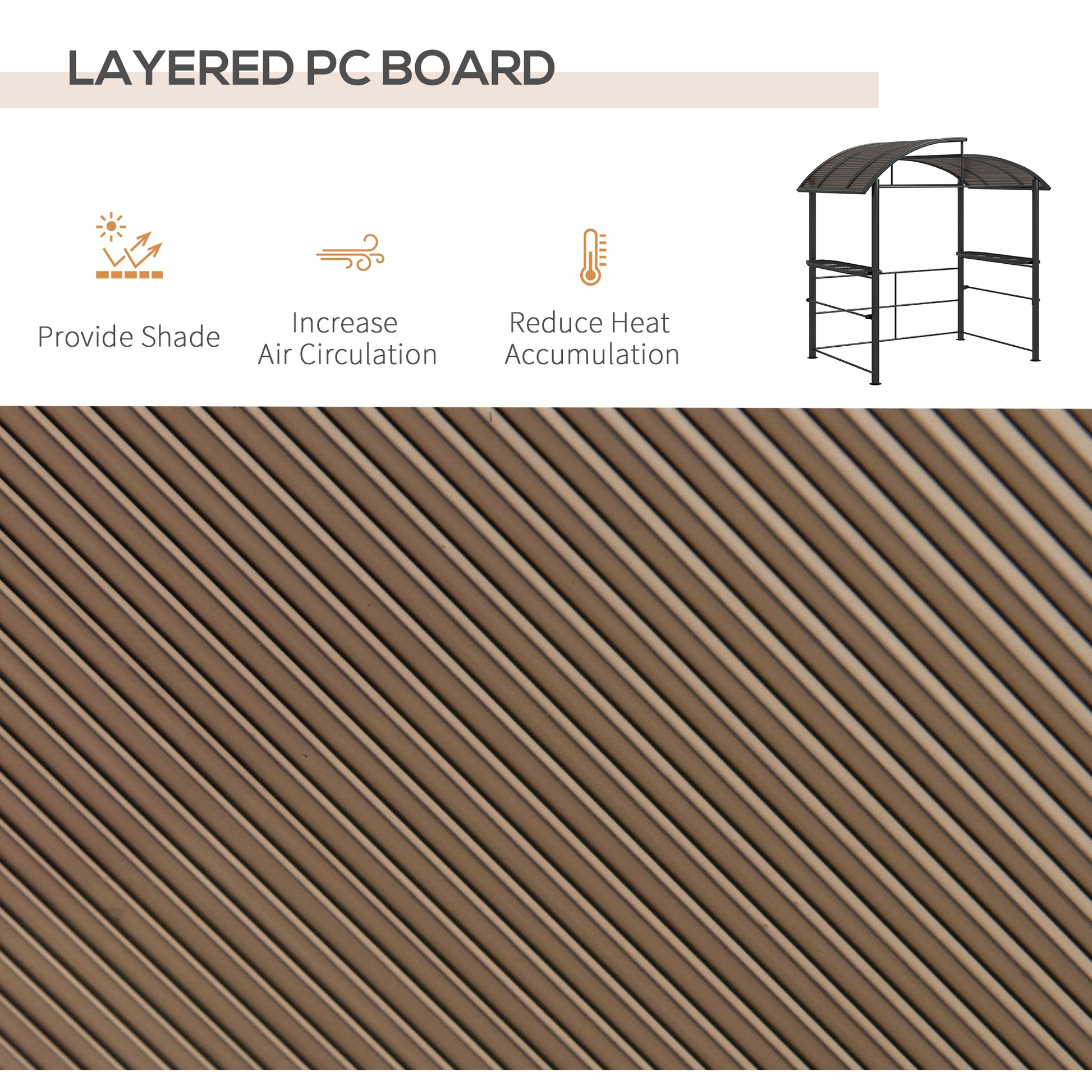 Outsunny 2.4 x 1.5m Outdoor Grill Gazebo with Side Shelves, PC Board Roof, Dark Grey