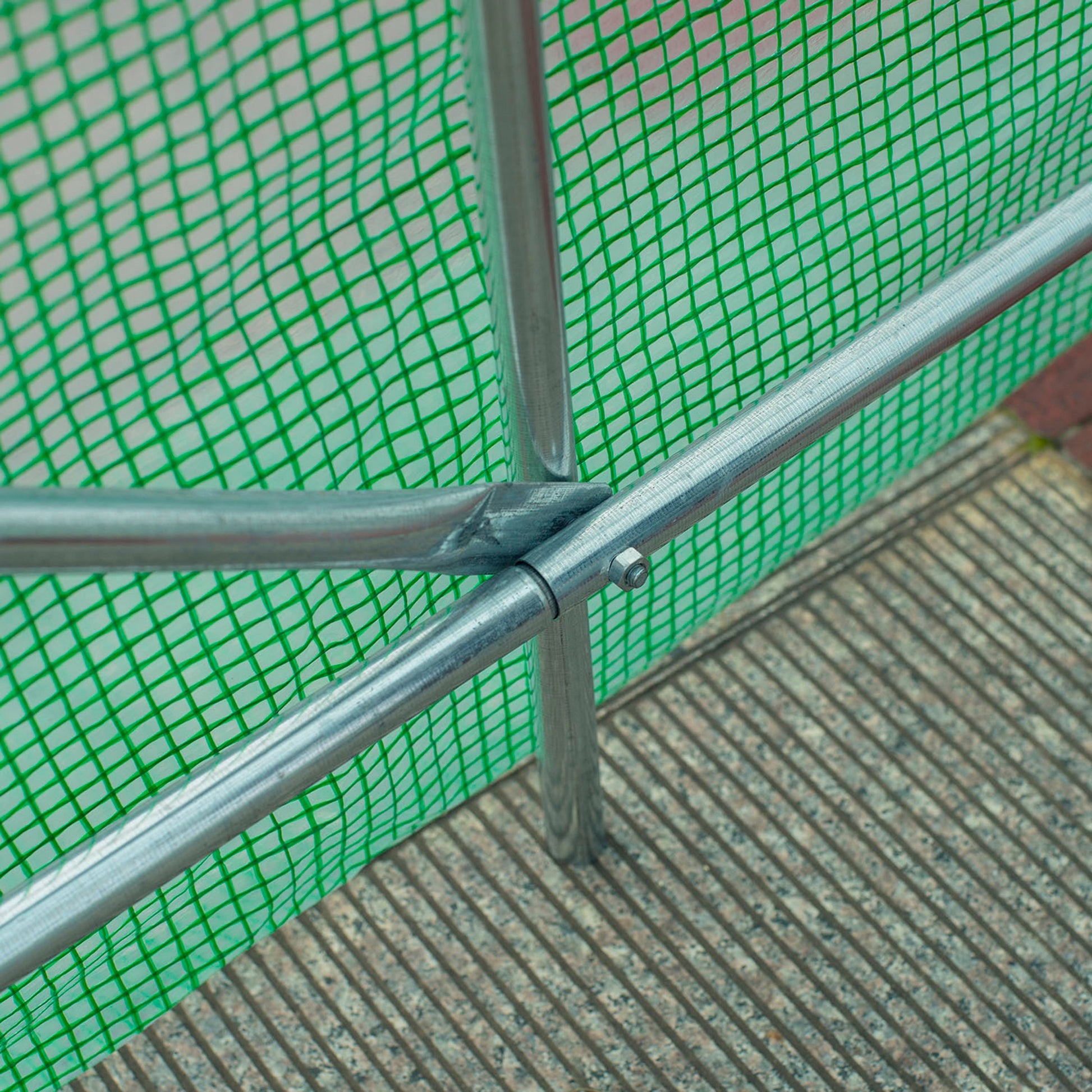 Put up and start growing a garden of greenery: look to this Outsunny 2.5 x 2m garden polytunnel greenhouse. A spacious and open inside design, there's plenty of room to grow a variety of vegetables, flowers and more; how about bringing in shelves too for easy organisation? A steel frame for a strong standing structure, with metal rods for extra support. Use the included guy ropes and ground stakes to pin structure to ground. Complete with four mesh windows and large roll-up door.