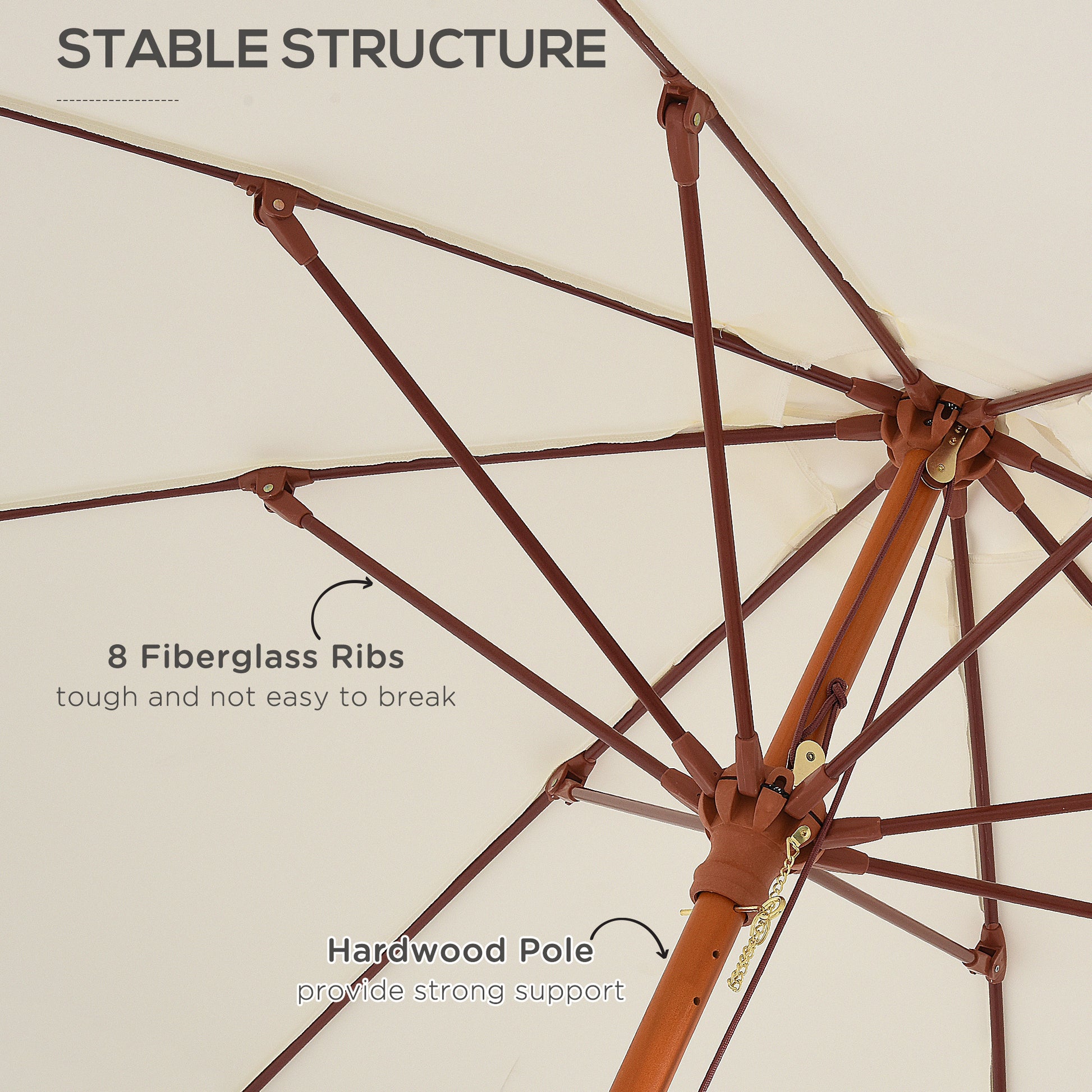Outsunny 2.5m Wood Garden Parasol Sun Shade Patio Outdoor Market Umbrella Canopy with Top Vent, Cream White