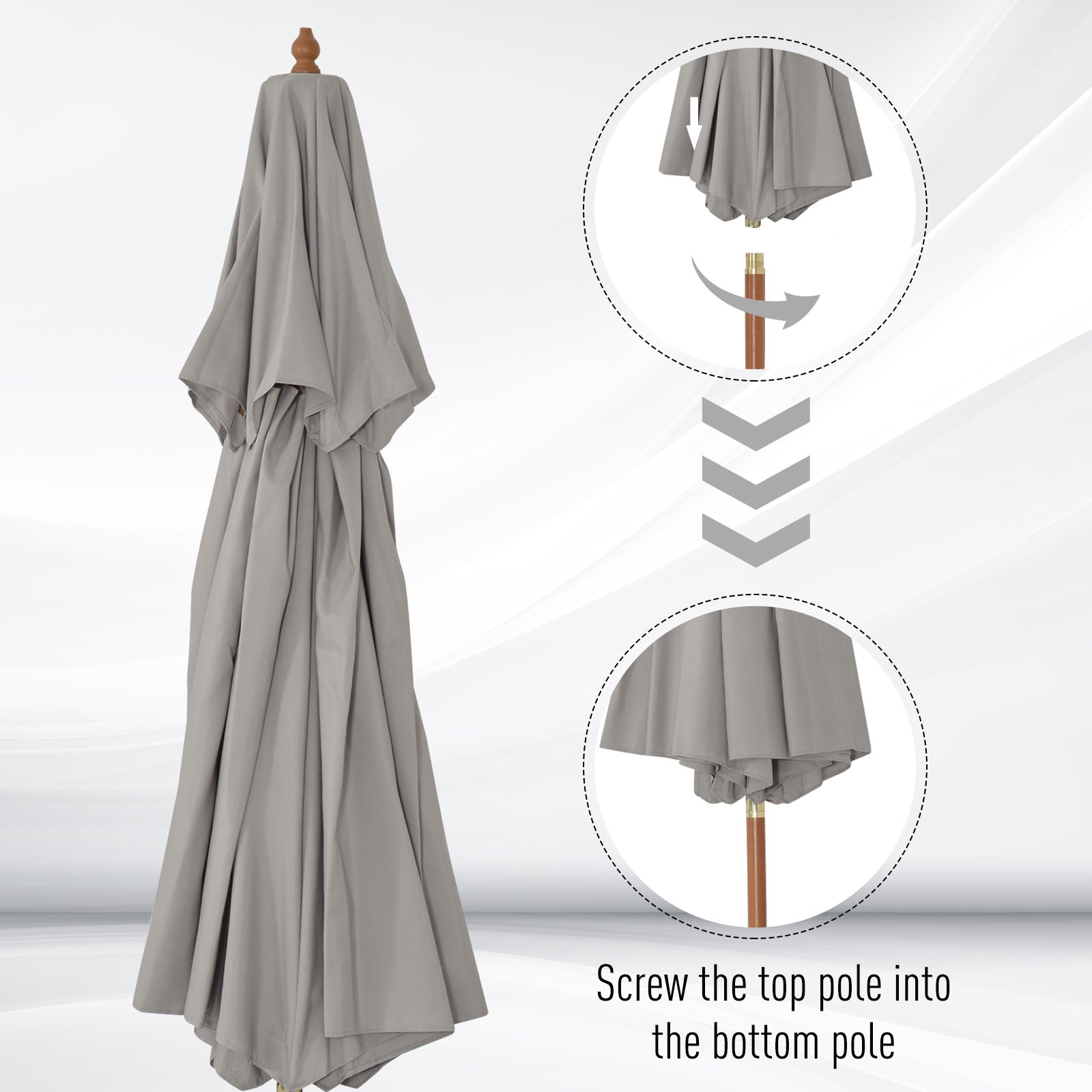 Live the elegant way this season and beyond - choose Outsunny sunshades for garden. Using poplar wood for the main structure, the warm brown color works in hand with the grey top, creating a beautiful look that is nicer on the eye than standard metal. The wood is tough and durable so it can be used all day long, with eight bamboo ribs connecting the canopy to the pole for extra strength. Crafted into a two-tier design that lets air in and out, helping to reduce any wind-build up underneath.