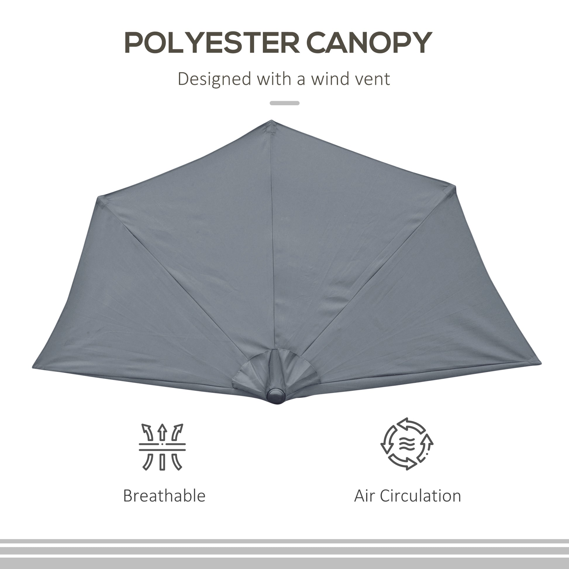 Outsunny 2.7m Balcony Half Parasol 5 Steel Ribs Construction Garden Outdoor Umbrella Grey