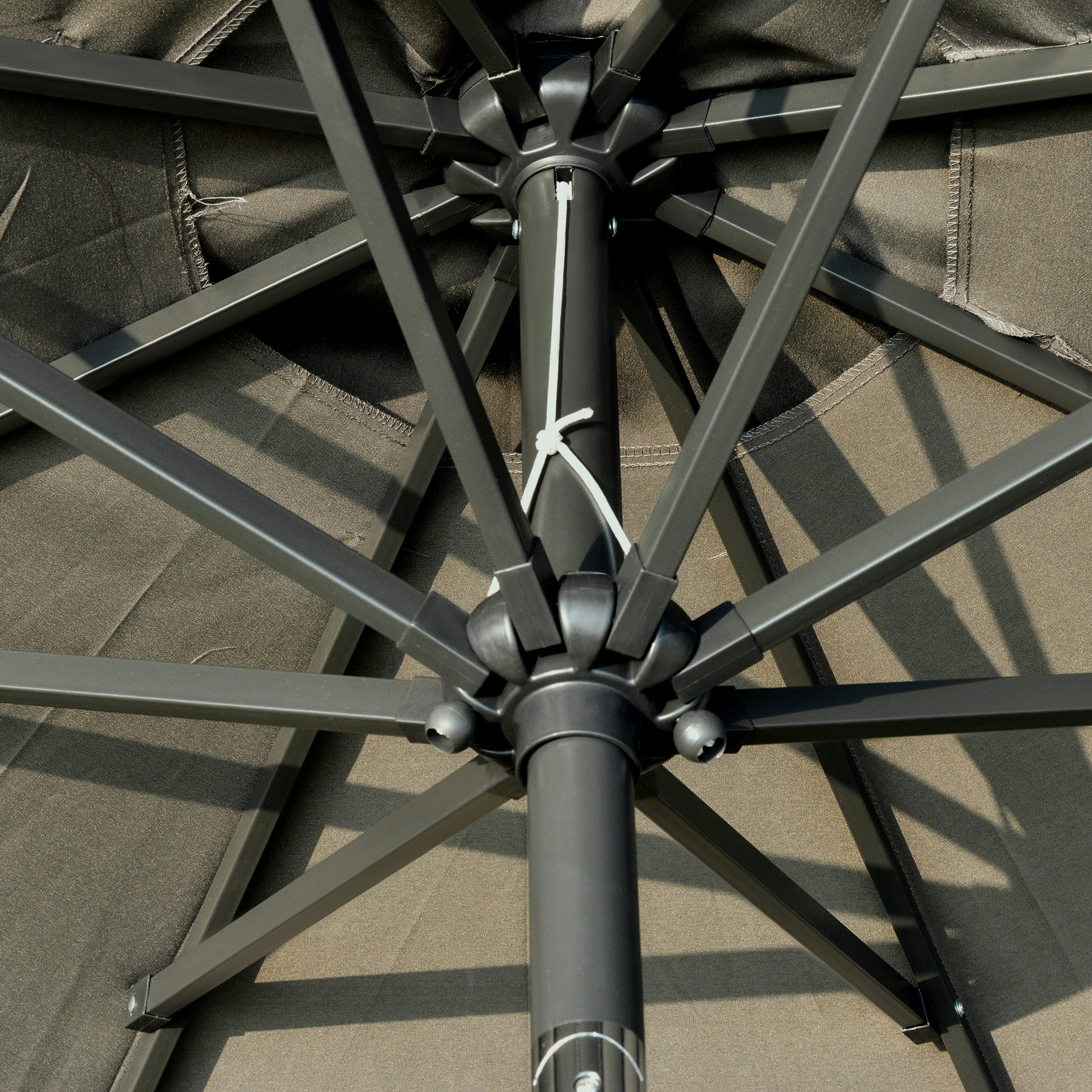 Outsunny 2.7m Garden Parasol, Patio LED Umbrella with Push Button Tilt/Crank 8 Rib Sun Shade for Outdoor Table Market Umbrella Grey