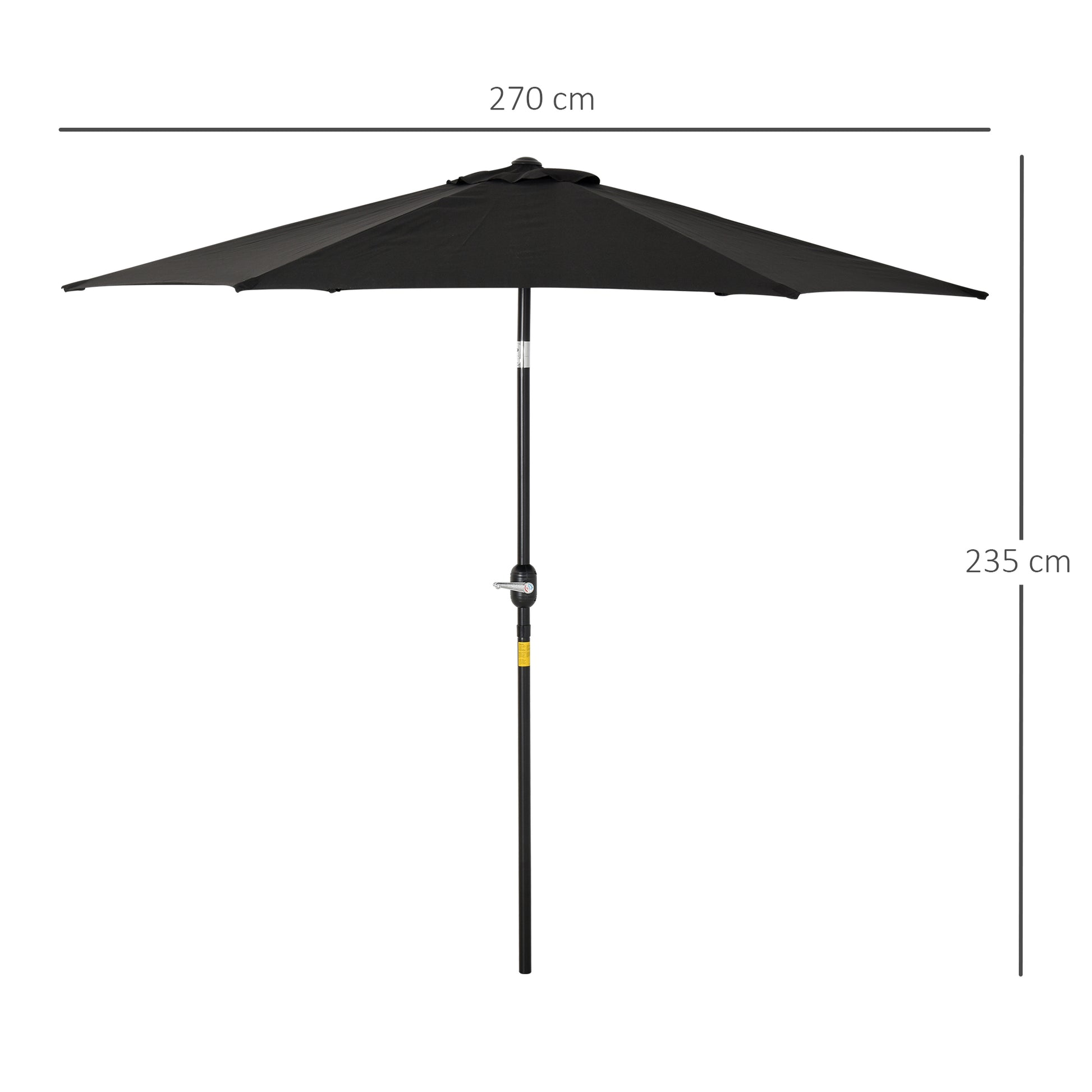 Outsunny 2.7M Garden Parasol Umbrella with Tilt and Crank, Outdoor Sun Parasol Sunshade Shelter with Aluminium Frame, Black