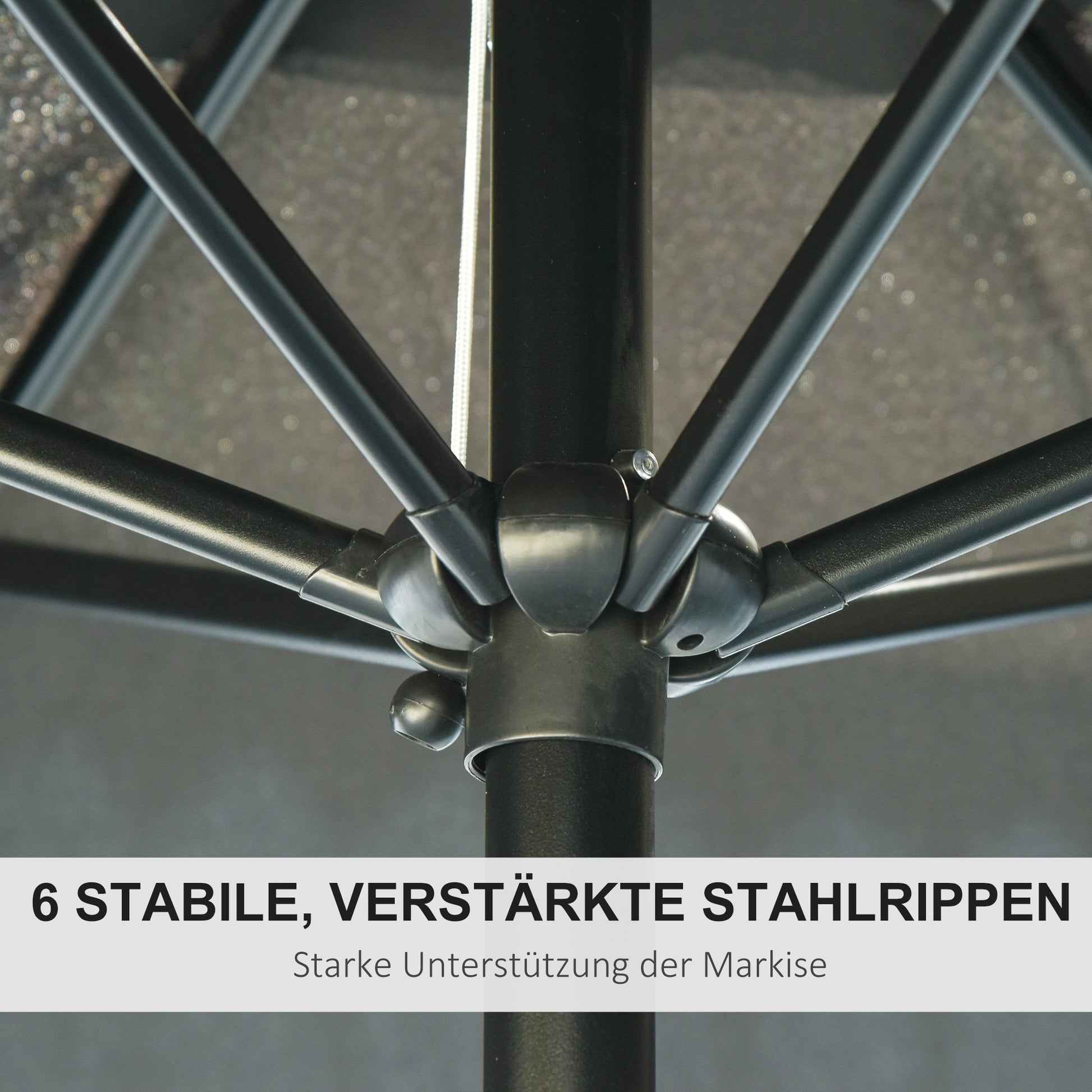The Outsunny large garden umbrella is ideal for enjoying the shade on sunny days that can tilt for better protection. Constructed with a metal frame and the shade is made of polyester fabric. It features classic colour and sleek lines and is designed to maximise the shade capability. Suitable for patio and garden, and can be used with existing garden furniture. The metal structure and 180g/㎡ polyester fabric give optimum support and stable features.
