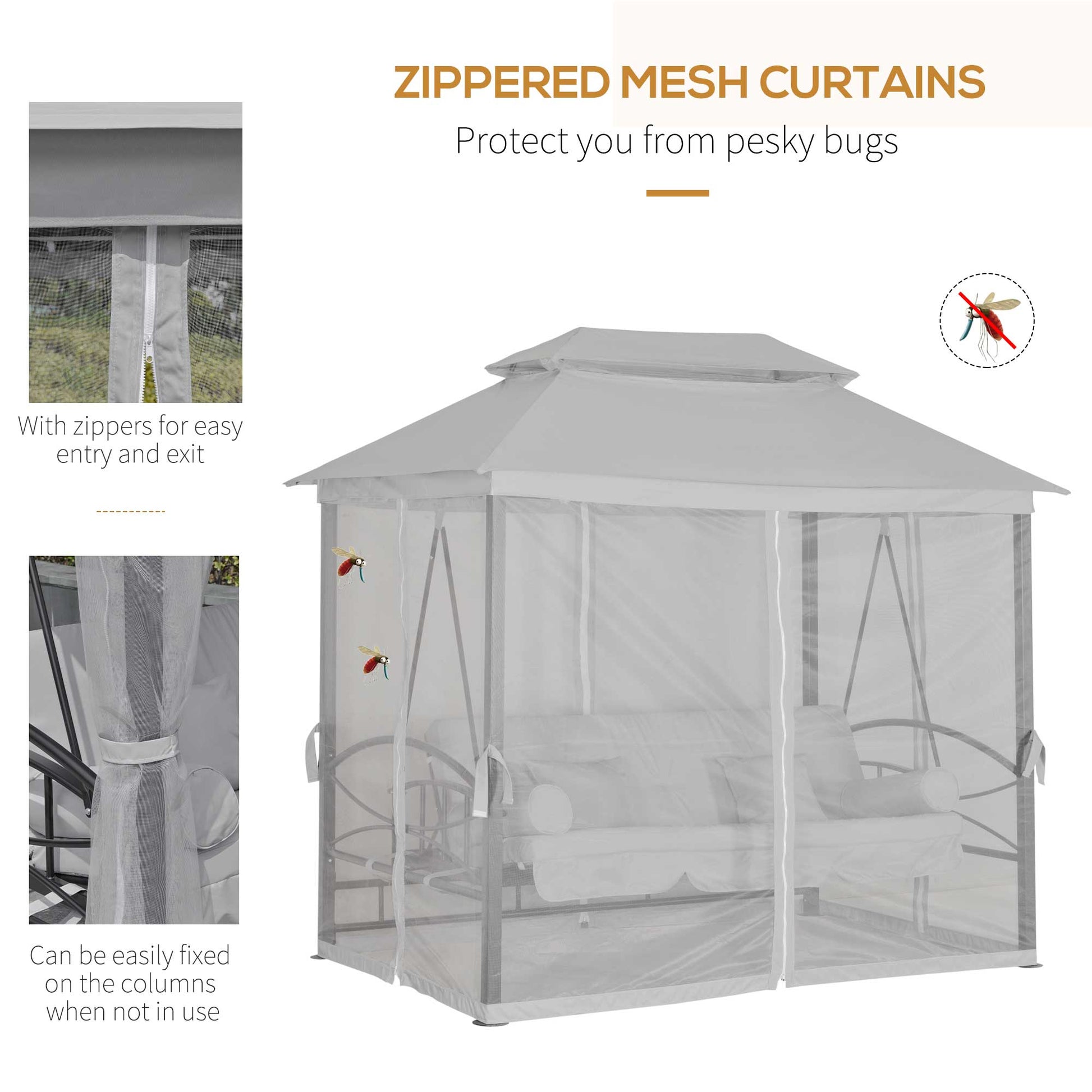 Outsunny 2-in-1 Convertible Swing Chair Bed 3 Seater Hammock Gazebo Patio Bench Cushioned Seat Mesh Curtains - Grey