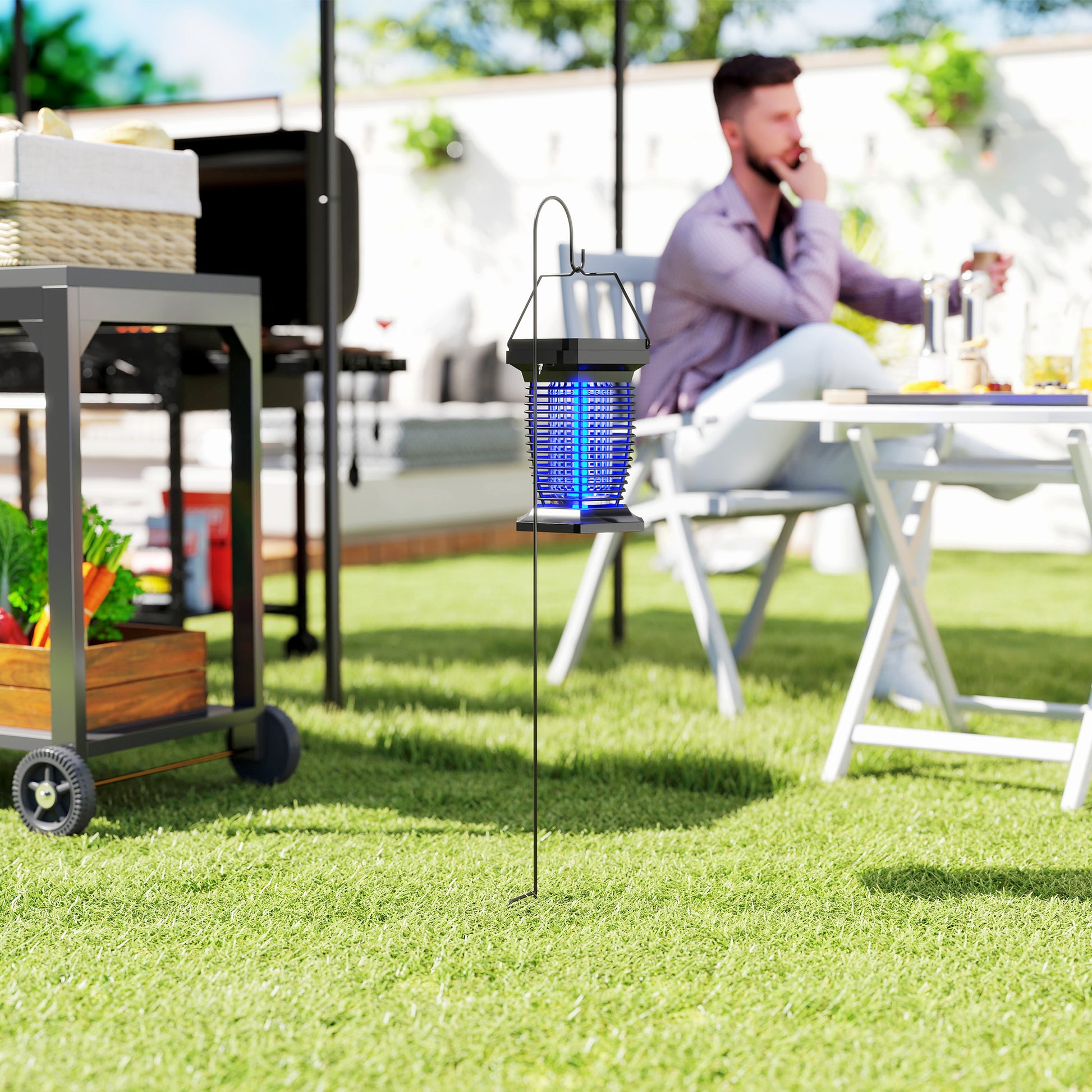 Transform your garden with the Outsunny mosquito zapper, a clever 2-in-1 marvel that doubles as a decorative lamp and a formidable bug zapper. Switch effortlessly between illuminating your space with its enchanting LED light and keeping those pesky bugs at bay. Solar or USB-C charged for convenience, it's a breeze to install, making your outdoor moments blissfully bug-free and beautifully lit.