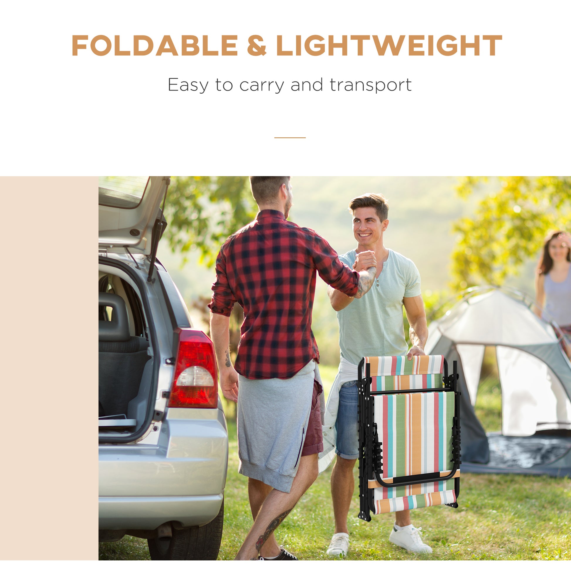Outsunny 2 Piece Folding Sun Lounger Beach Chaise Chair Garden Cot Camping Recliner with 4 Position Adjustable Multicolored