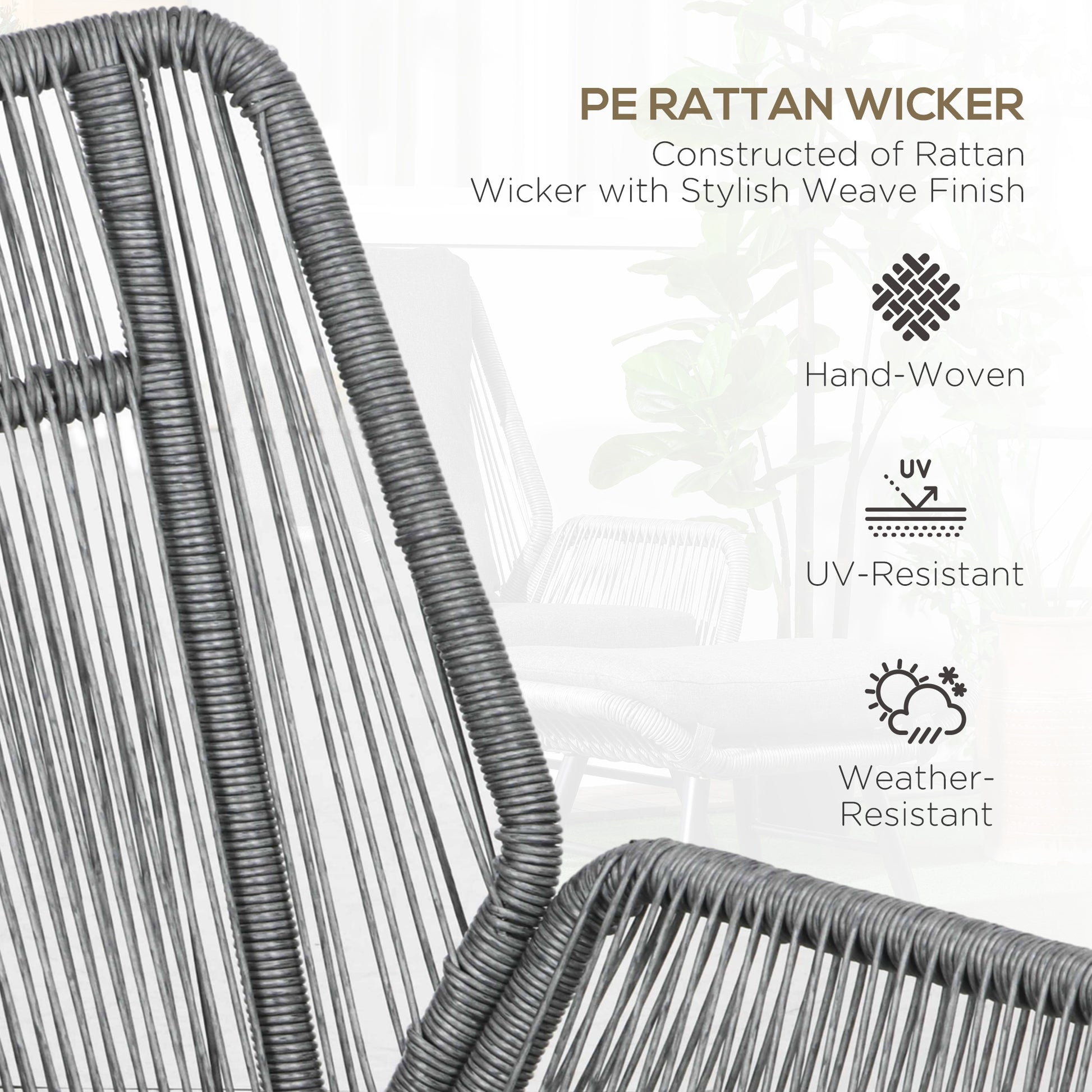 Outsunny 2 PCs PE Rattan Leisure Chair Set, Outdoor Reclining Patio Chair and Footrest w/ Adjustable Backrest & Cushion, Grey