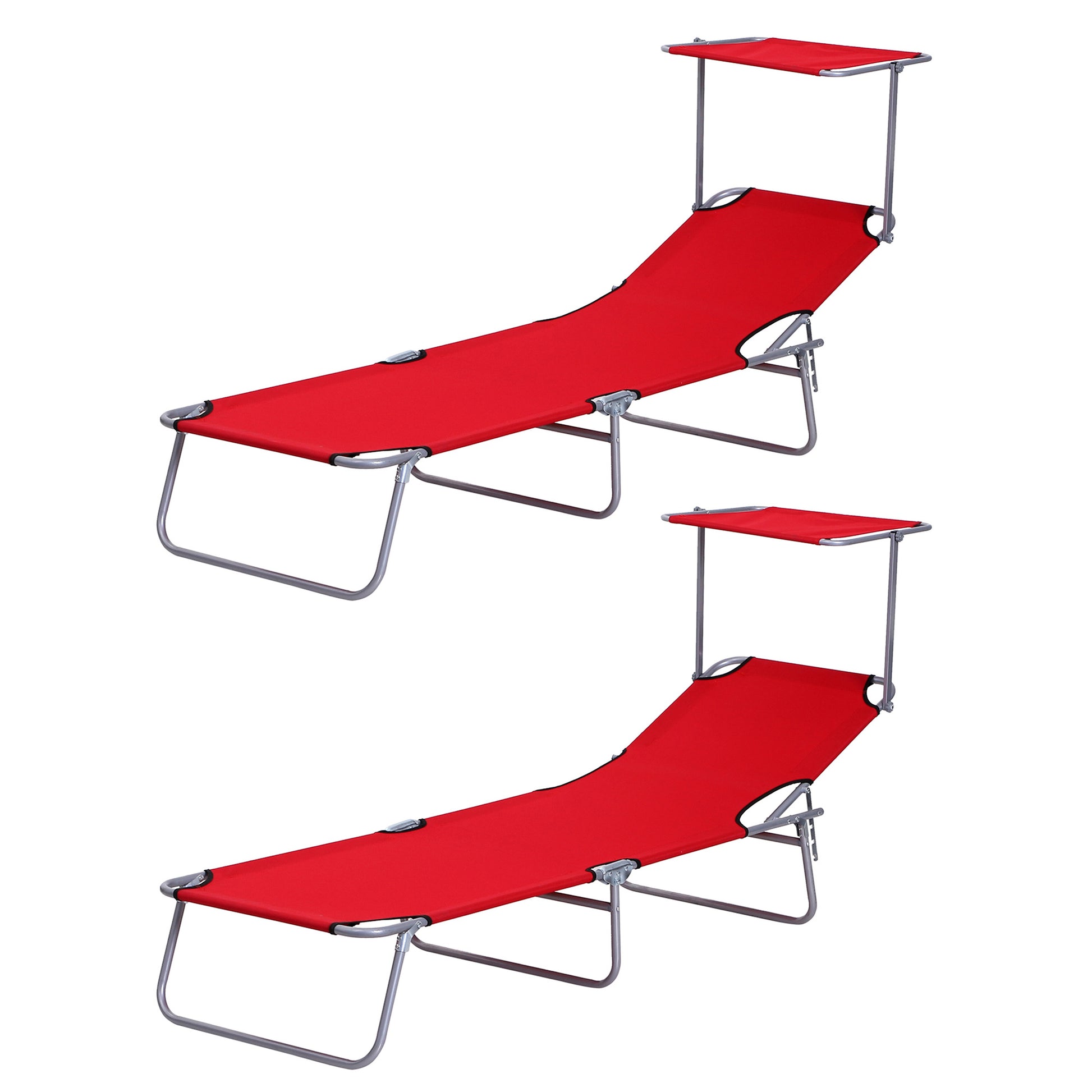 Outsunny 2 Piece Folding Sun Lounger, Lounge Chairs Reclining Sleeping Bed with Adjustable Sun Shade Awning for Beach, Patio