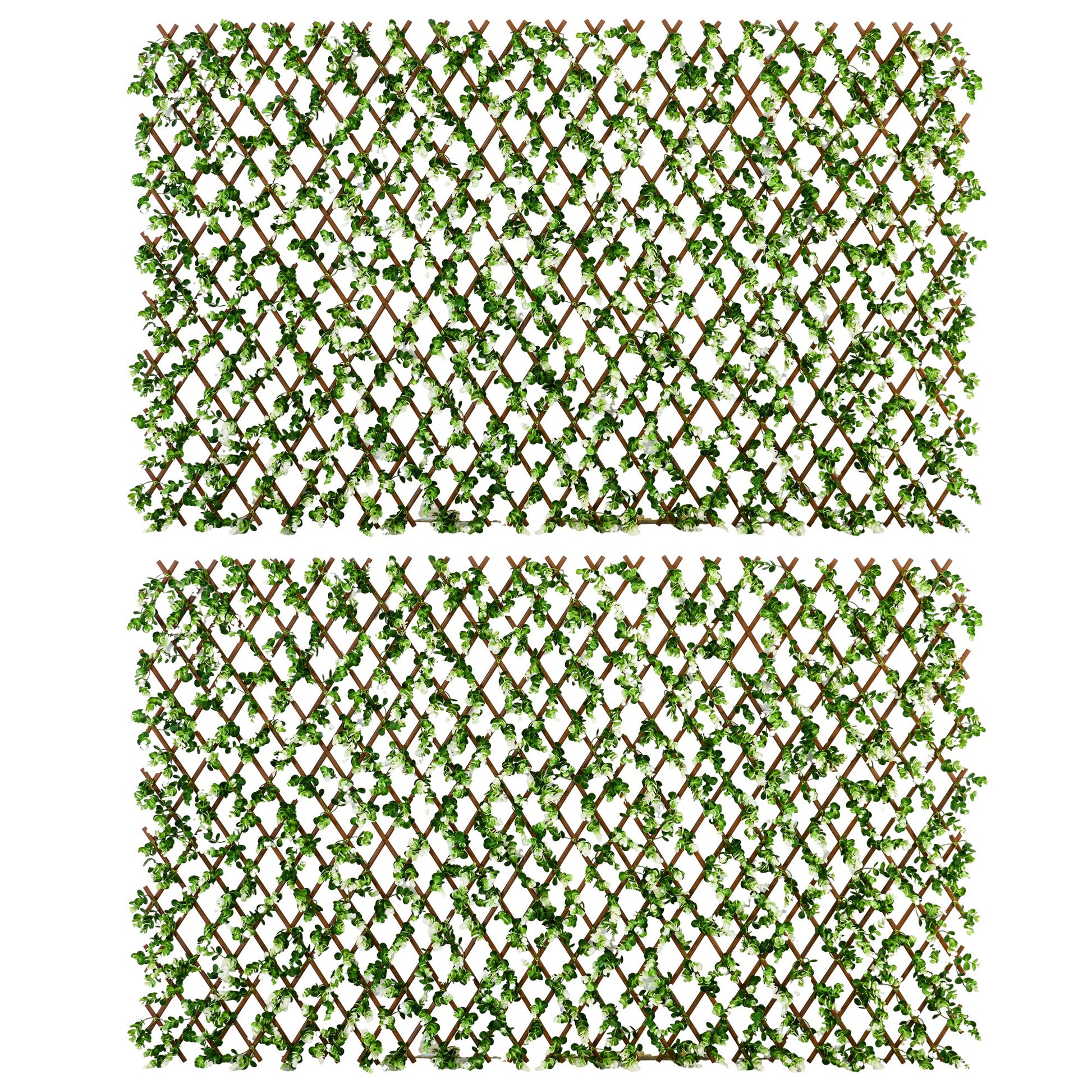 Outsunny 2 Pieces Expandable Faux Privacy Fence, 2m x 1m Decorative Trellis with Artificial Leaves, Garden Telescopic Hedge Privacy Screen