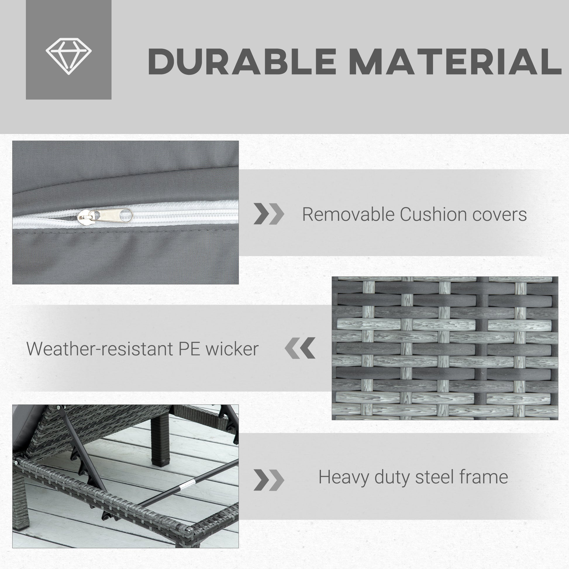 - Material: Galvanised Steel, PE Rattan, Polyester