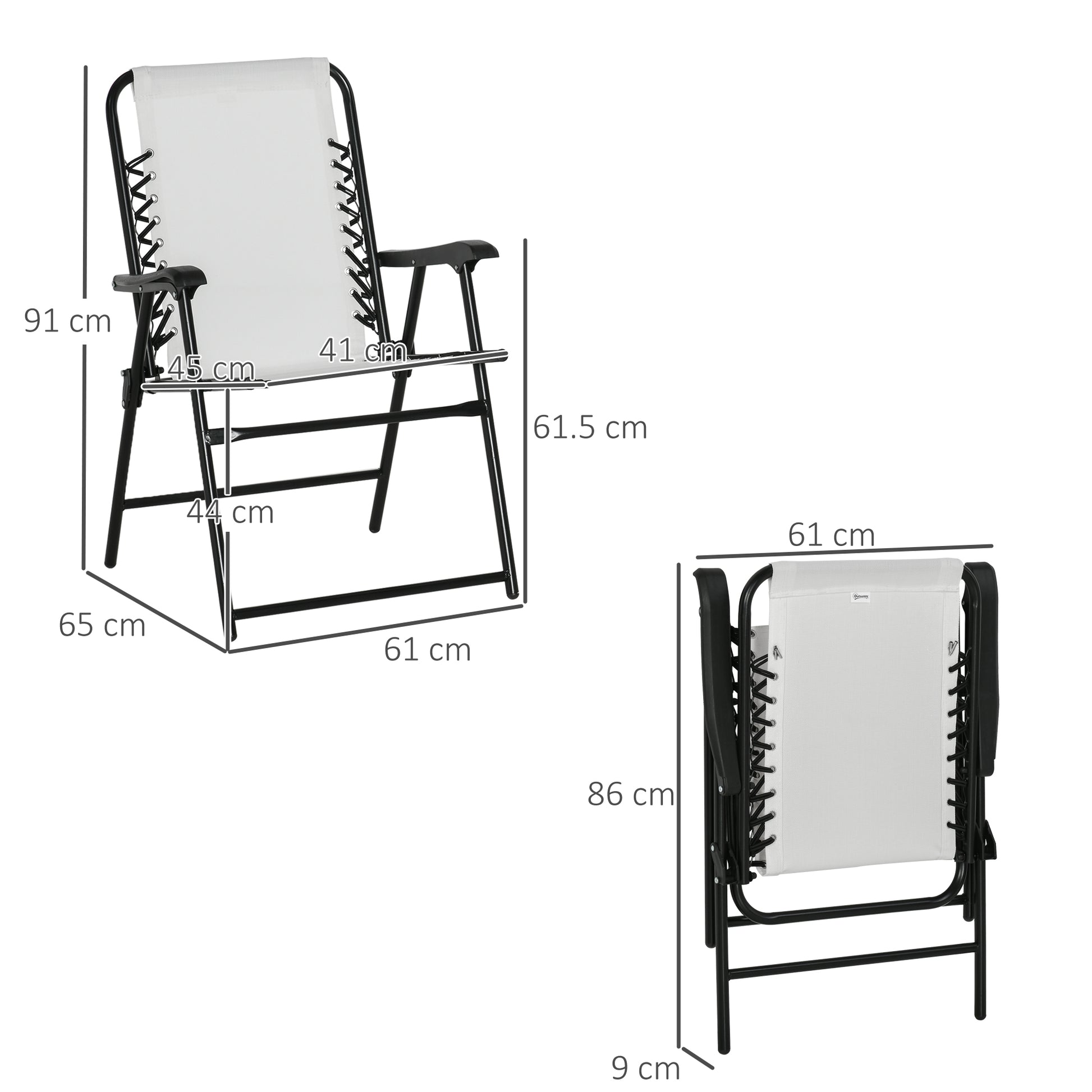 Outsunny 2 Piece Patio Folding Chair Set, Outdoor Portable Loungers for Camping Pool Beach Deck, Lawn Chairs with Armrest Steel Frame, Cream White