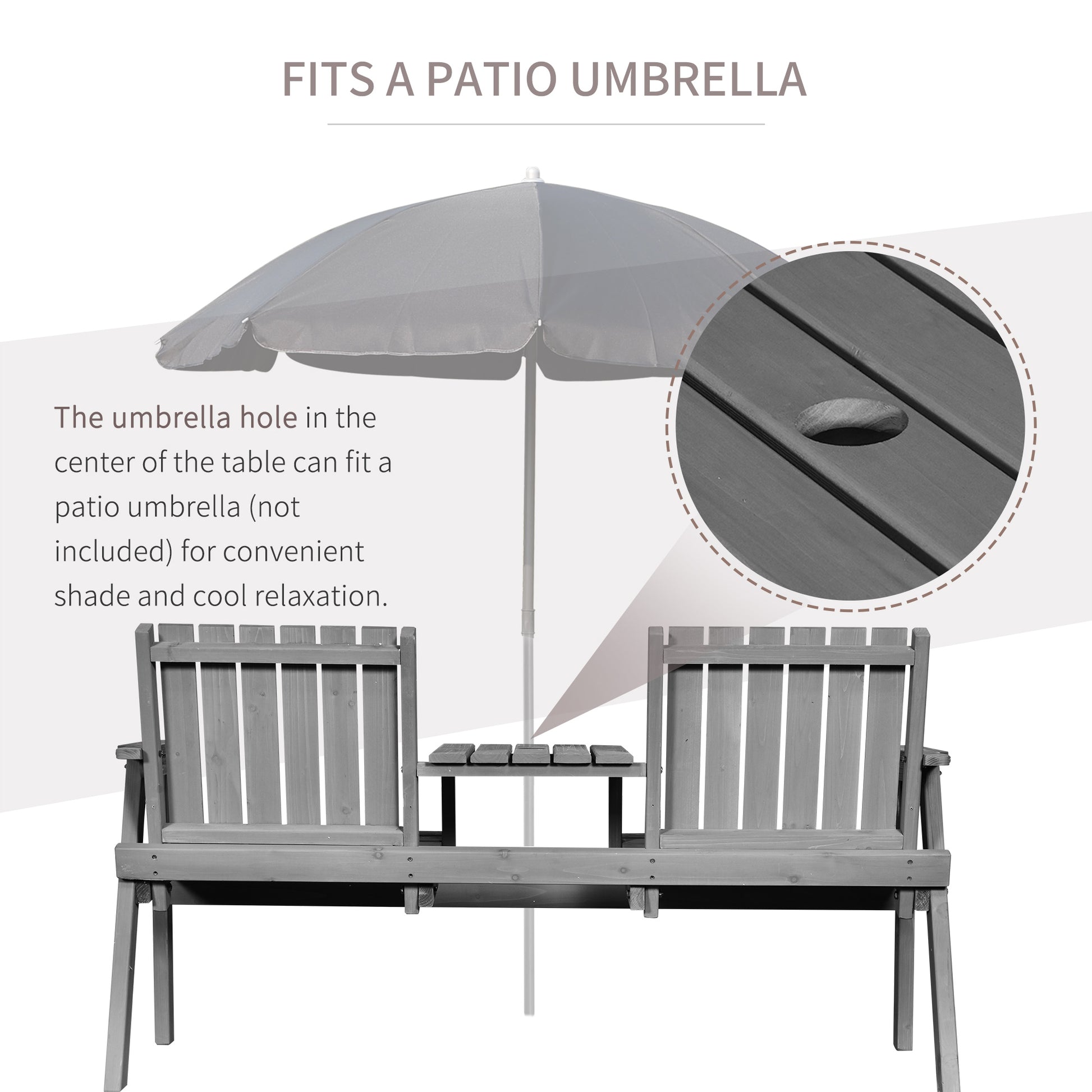 Outsunny 2-Seater Furniture Wooden Garden Bench Antique Loveseat Chair, Table Conversation Set for Yard, Lawn, Porch, Patio, Grey