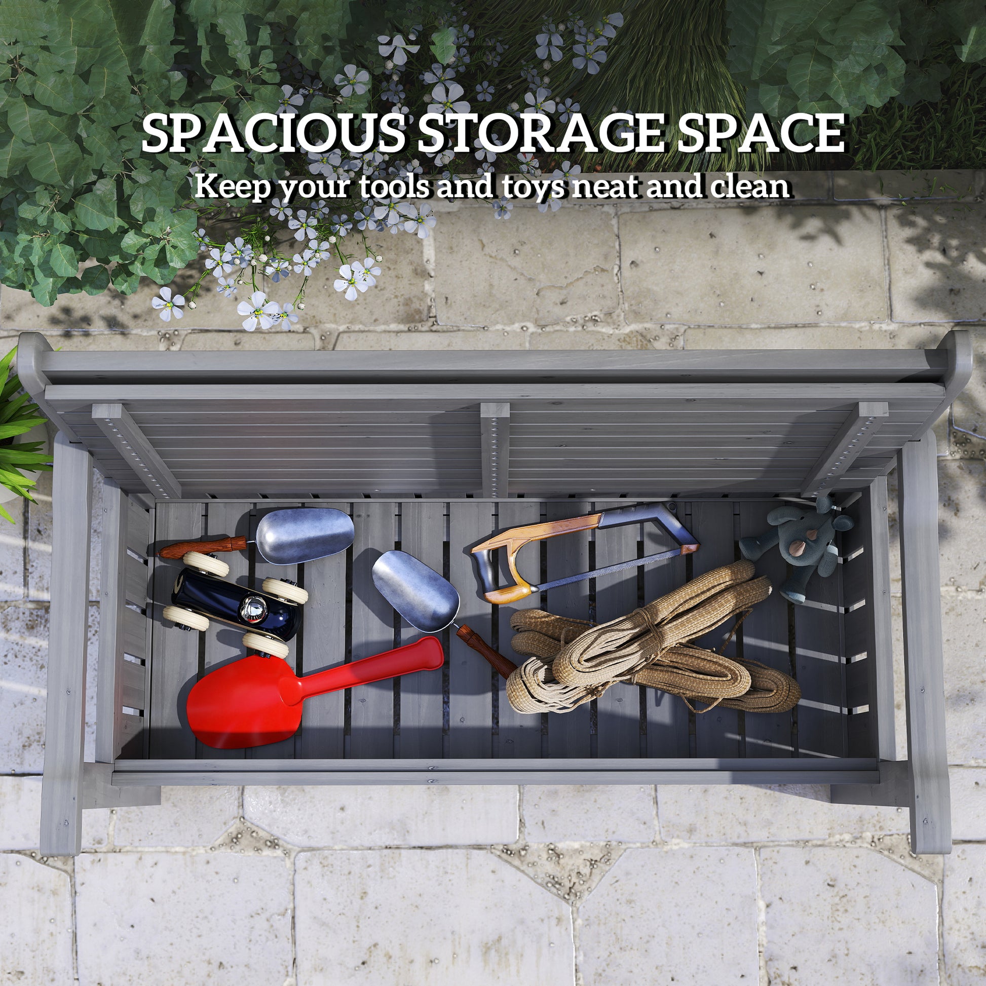 Outsunny 2-Seater Garden Storage Bench for Patio Wood Porch Decor Outdoor Seating, Charcoal Grey